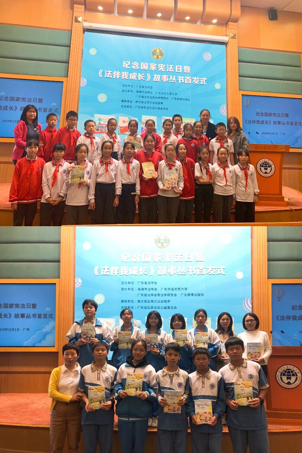 本网讯 为了培养我校学生的法律意识,增强对宪法的认识,12月1日下午,我校45名师生应邀参加了由广东省法学会、珠海市法学会和广东教育出版社联合举办的“纪念国家宪法日暨《法伴我成长》丛书首发式”。