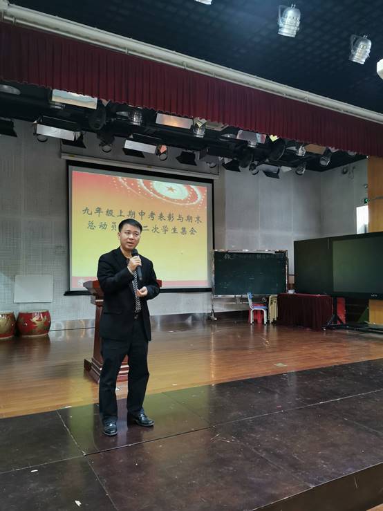 本网讯 为表彰期中考优秀学生和进步学生,帮助同学们做好期末考前思想工作,2019年12月16日上午8:30广外附属中学初三年级召开本学期第二次学生会议。出席本次会议的有袁宇迪副校长、中学学生处、教学处的领导、全年级老师和学生。