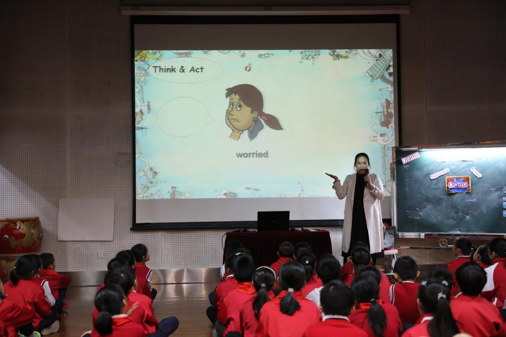 接着,谭丹丹老师对我校的英语课程设置进行了介绍,重点介绍了我校的特色课程——英语戏剧课。随后,广东省英语教研员王琳珊老师进行了主题为《基于活动观、指向核心素养的教学目标确定》的讲座。王老师深度剖析了新课程标准的内涵,同时阐释了如何制定教学目标才能真正落实英语学科核心素养。短短一个小时的讲座给我校老师们带来了醍醐灌顶之感。