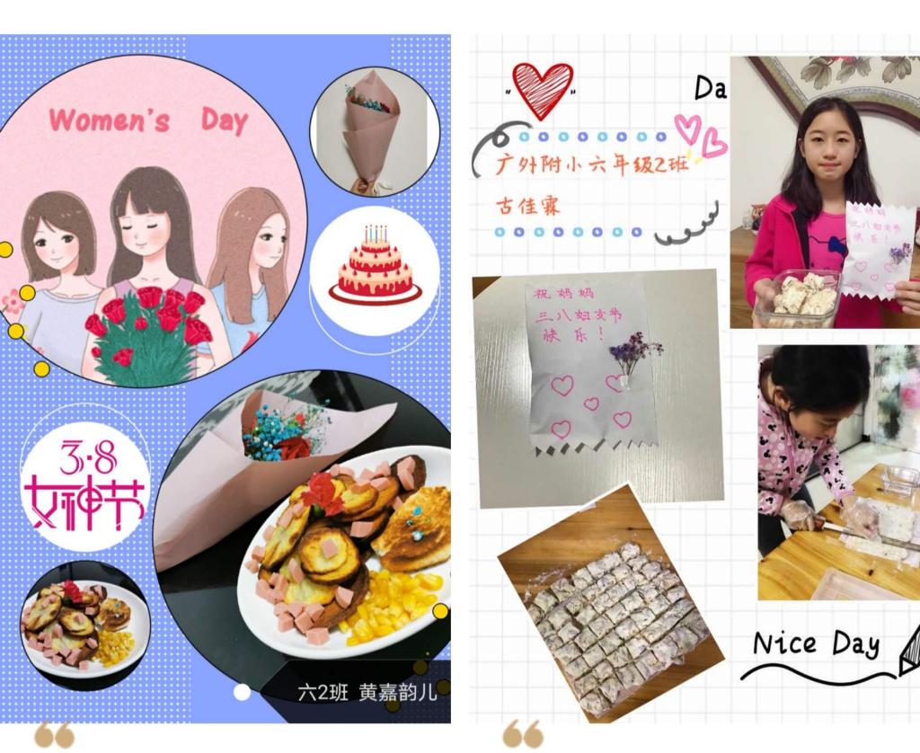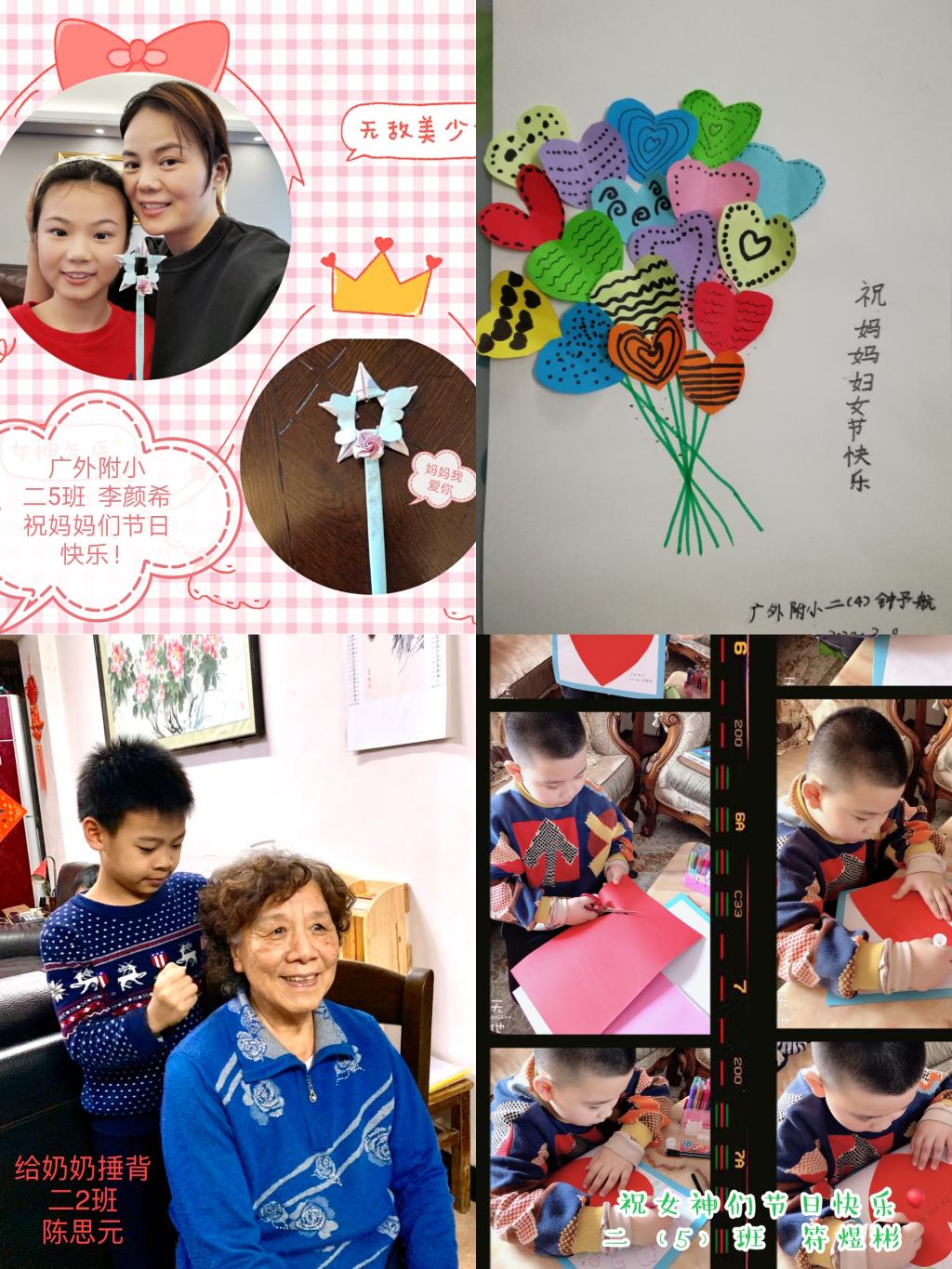 本网讯 在这暖意融融的三月, 又迎来了一年一度的“国际三八妇女节”。为了让少先队员们学会感恩、尊敬长辈,我校组织了“给妈妈(长辈)一个惊喜”三八特别活动,队员们积极响应,纷纷向妈妈、老师、长辈,以及抗疫前线的女性工作者送去真诚的祝福!