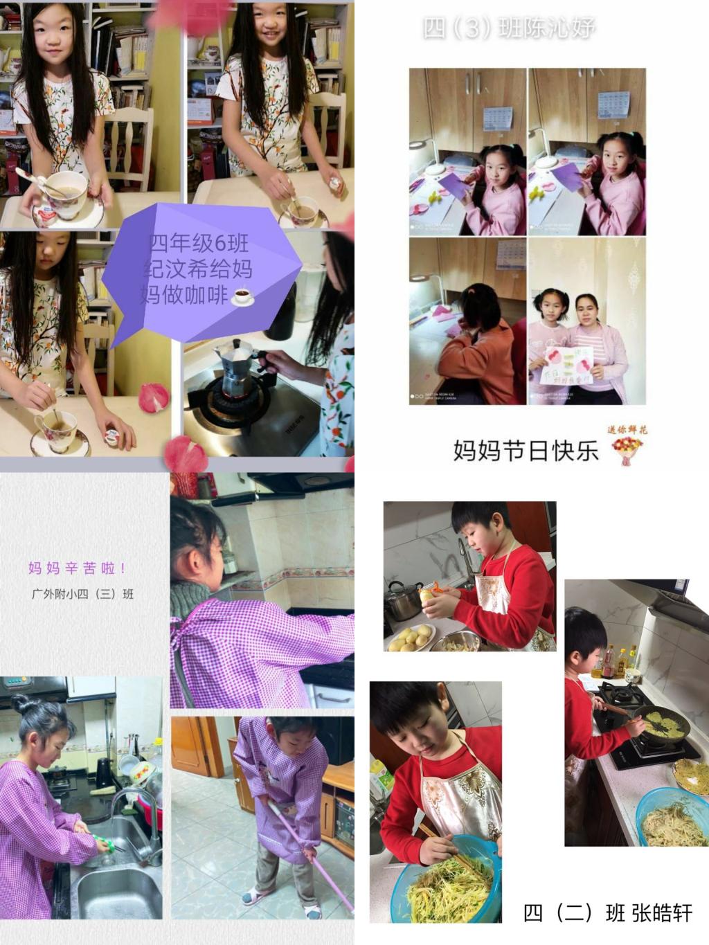 五、六年级同学懂得了长辈的辛苦,积极承担家务活,用实际行动表达对他们的深深的感激和祝福!
