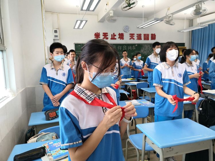 初一建队、初二离队仪式,戴上或者摘下红领巾,在队旗下庄严的呼号。这些,这是一次向童年致敬的仪式;也是迈向未来的标志;更是我们每位中国少年儿童的一次思想洗礼、生命的成长;是我们中国人红色基因的传承、家国情怀的沉淀!这些都将通过鲜艳的队旗、鲜艳的红领巾深埋心底、代代相传。
