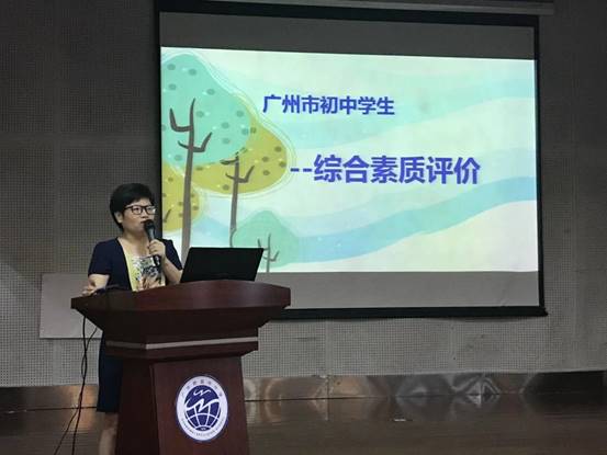接着,学生处林旭丽主任上台发言,她从思想品德、学业水平、身心健康、艺术素养、社会实践五部分向学生们细致讲解了“广州市初中生综合素质评价”方案,同时林主任也传达了自己的希望,希望每位学生重视自身素质评价,养成良好的常规习惯。
