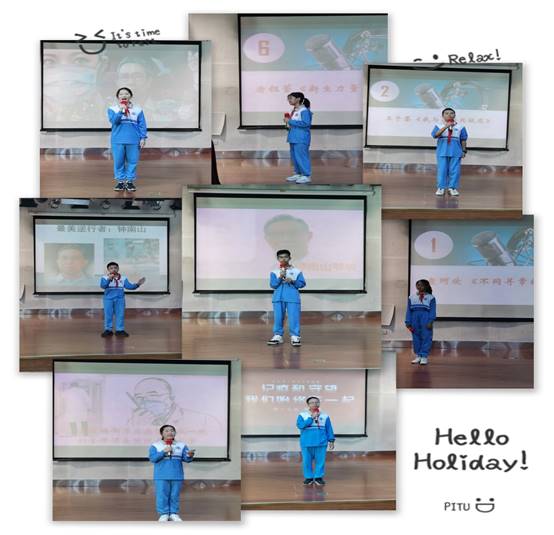 比赛过程中,来自各班的选手们用流利标准的语音语调、自然投入的舞台表现力,声情并茂地向我们展示了一个个感人肺腑的故事:准备充分的《不同寻常的2020》、从容淡定的《我与英雄共抗疫》、慷慨激昂的《记疫和守望,我们始终在一起》、优美且正能量满满的《加法与减法》、专注忘我的《最美逆行者:钟南山》、思路清晰紧扣主题的《新生力量,闪耀前方》、自信积极的《众志成城,我们必胜》以及大气动情的《学抗疫英雄,爱国从青少年做起》。选手们精彩的演讲,动情的诉说,使大家如临其境,感同身受。初二年级的点评嘉宾张柳老师、冯文敏老师的用心点评,让会场响起阵阵热烈的掌声。