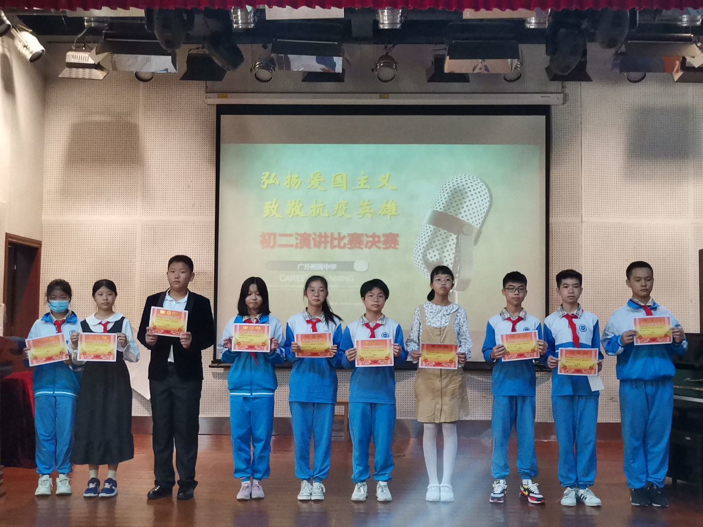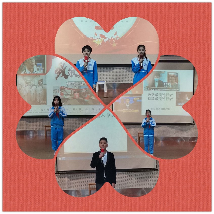 本网讯 11月2日上午,初二年级全体师生在学校礼堂举办了题为“弘扬爱国主义、致敬抗疫英雄”的演讲比赛。本次比赛由学生处策划筹备。语文科组吴冠仪老师、徐润华老师、吴美茜老师担任评委。李丽娜老师、许穗祺老师担任现场点评嘉宾。