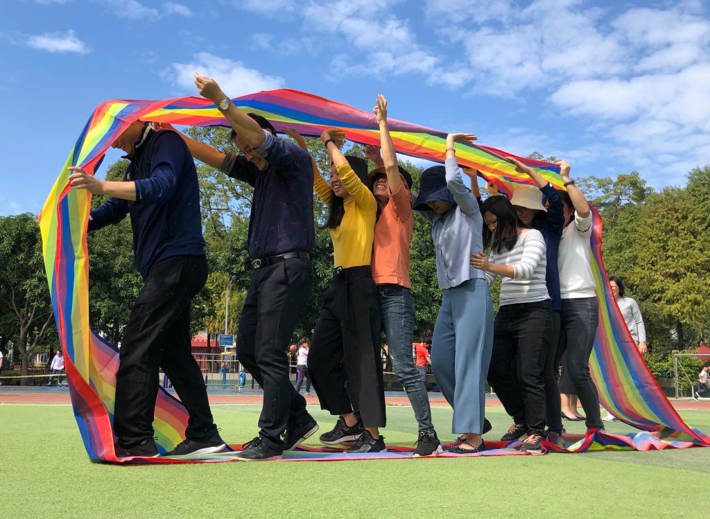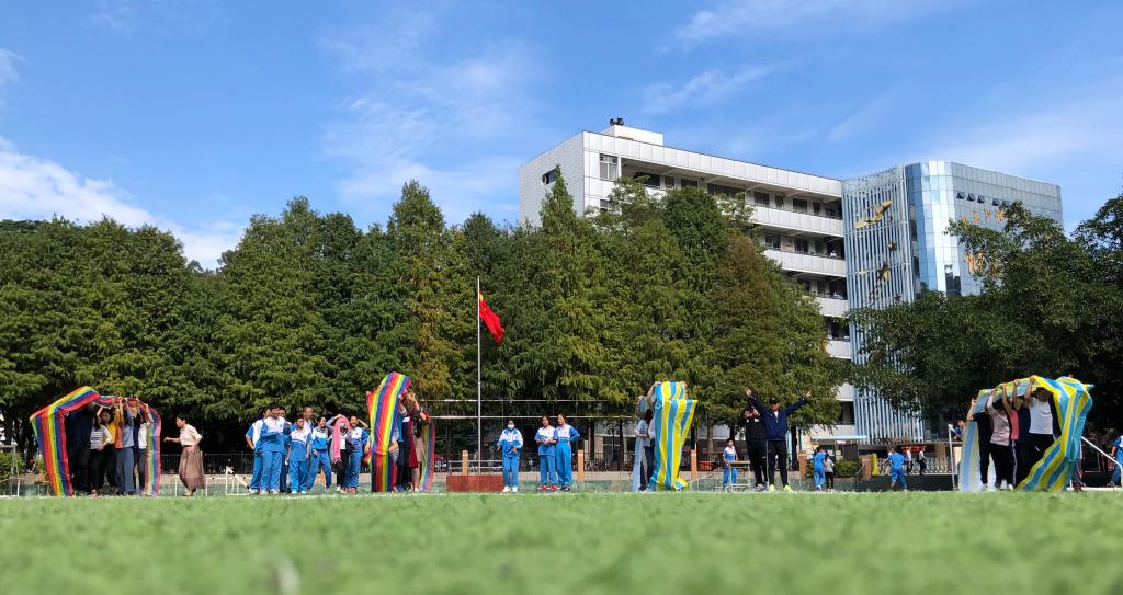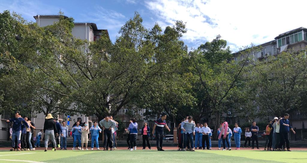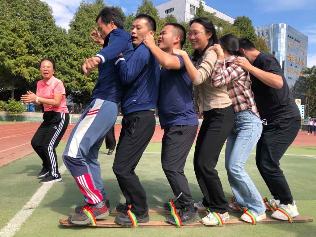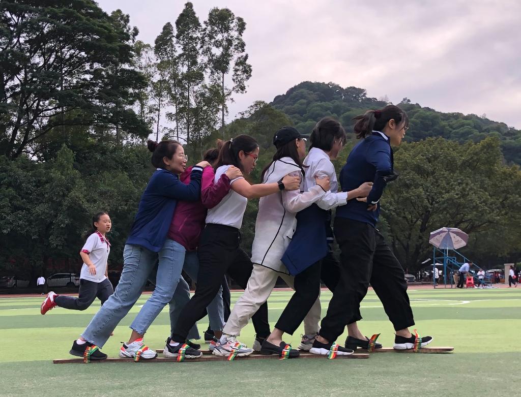 活动现场气氛热烈,笑声、掌声、喝彩声响不断,展现出“附校人”奋发昂扬的精神面貌。这是一项极其考验团队协作能力的游戏,除了要合理分配每名队员的位置,更要结合相互之间的默契,统一步伐,稳步向前。赛场上,我们总能听到响亮而又整齐的前进口号。