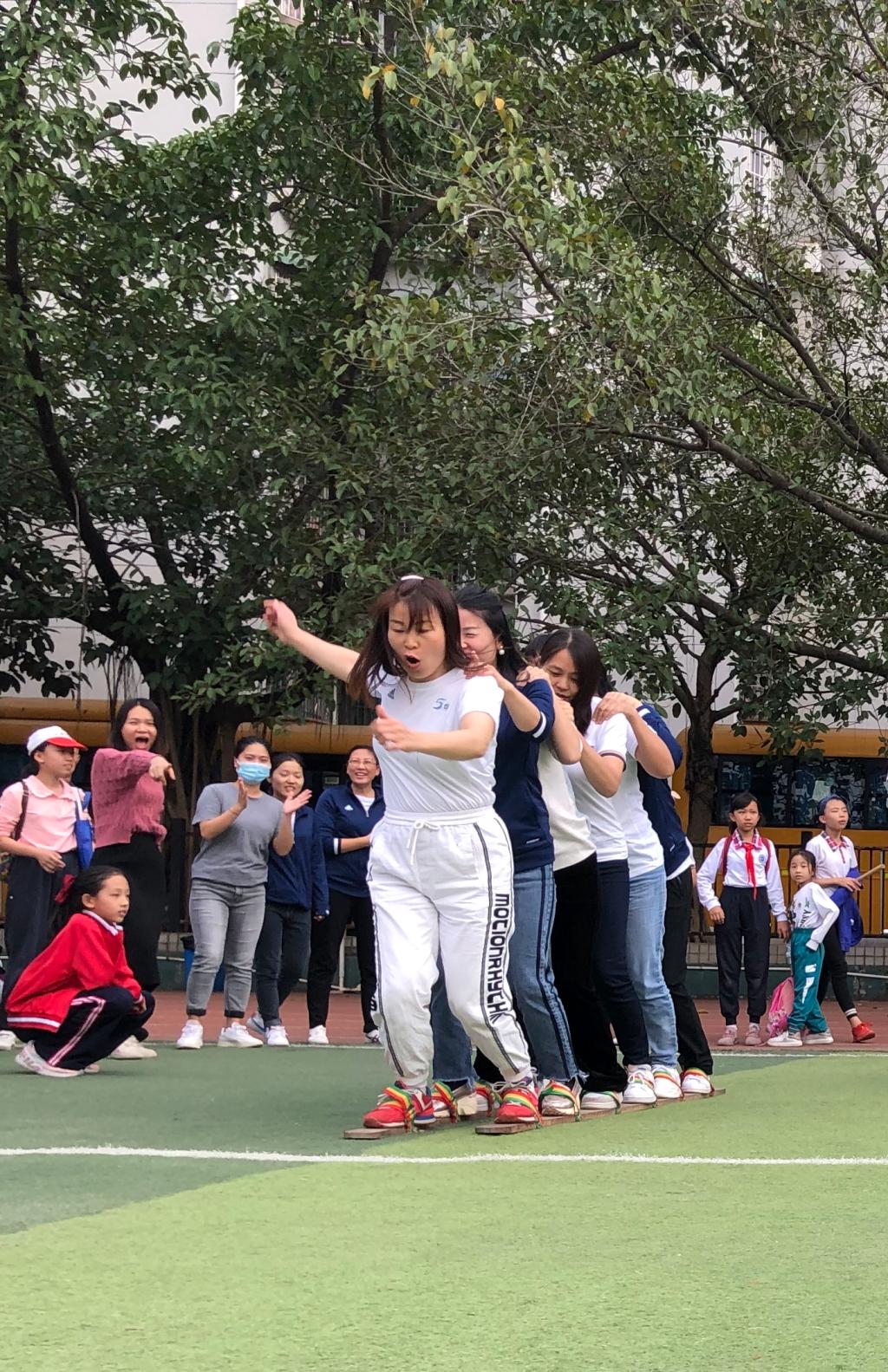 经过激烈角逐,最终五年级组用时15秒84获得“同舟共济”冠军,行政后勤组、七年级组、一年级组、四年级组、三年级组分别获得2—6名;五年级组用时16秒37获得“无敌风火轮”冠军,六年级组、一年级组、四年级组、九年级组、三年级组分别获得2—6名。这次趣味运动会,让教职工体验到了运动的快乐、奋进的精神、参与的喜悦,提高了协同作战的团队意识,激发了教职工参与锻炼的积极性,有效增进了同事之间的情感交流,成为美丽“附校”一道亮丽的风景。