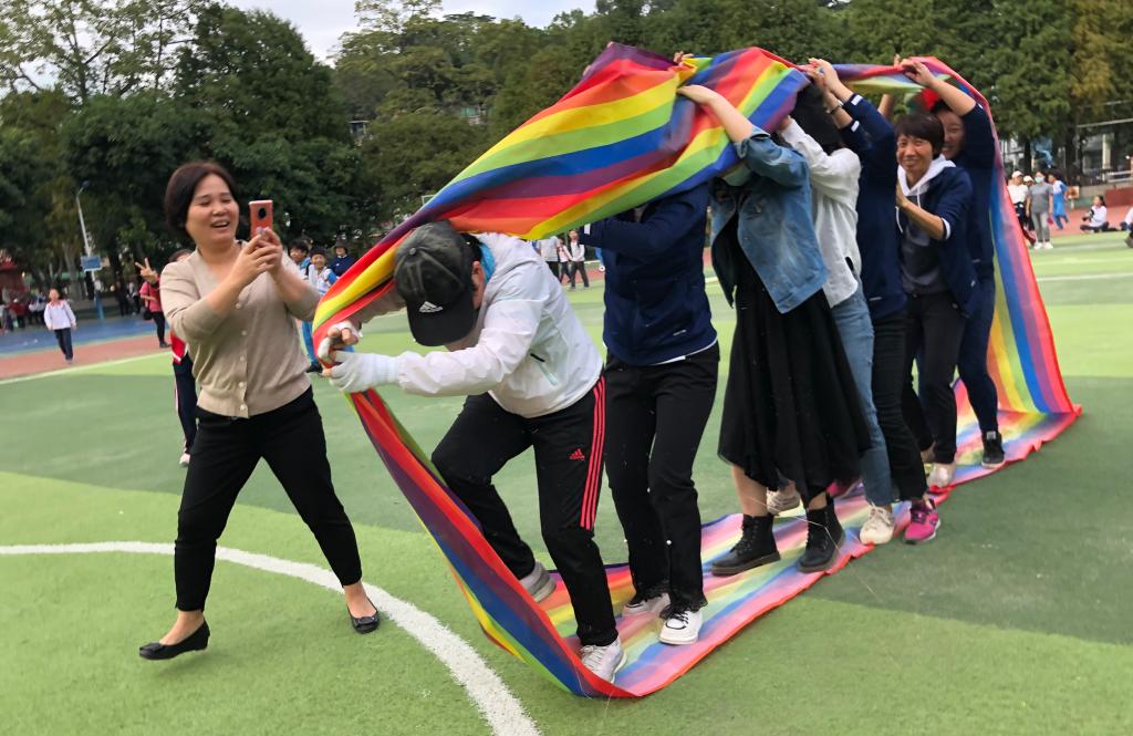 本网讯 11月13日,学校足球场上,一场迷你趣味运动气氛热烈,趣味横生,参赛教师齐心协力,奋勇争先,观众兴致高昂,精神振奋,掌声、笑声、助威声此起彼伏。这个11月,大家同心并力把激动的笑脸和运动的快乐向着美好的未来一起前进着。