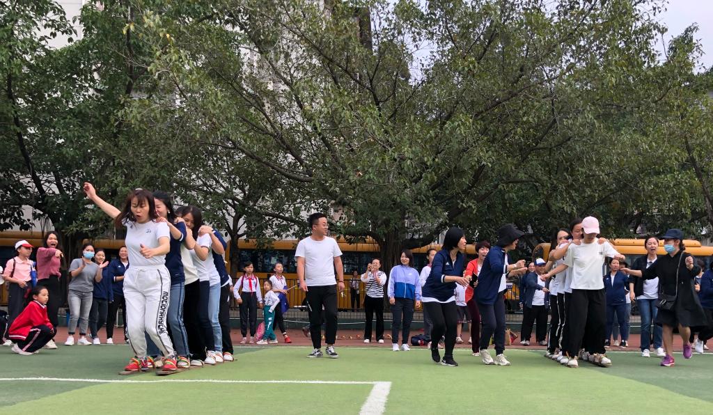 “一、二;一、二!”3支队伍欢快地喊着口号,迈着整齐的步伐,奋勇向前,比赛现场,老师们积极投入、热情高涨,现场氛围和谐融洽、轻松愉悦,又不乏紧张激烈,一片加油声、呐喊声和欢笑声交织起伏,每一位参与者都乐在其中,不仅体验了运动的快乐和竞赛的乐趣,与此同时也展现了个人魅力、彰显了集体风采。