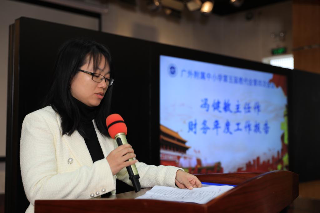 财务主管冯健敏在2020年学校财务工作报告中通报了2020年一年的主要财务工作、财务收支状况、财务运行情况,并提出未来财务工作思路与设想是优化支出结构,支持学校重点工作;积极争取提高学费,“小步快走”增加收入,让教职工真正“有感觉”。