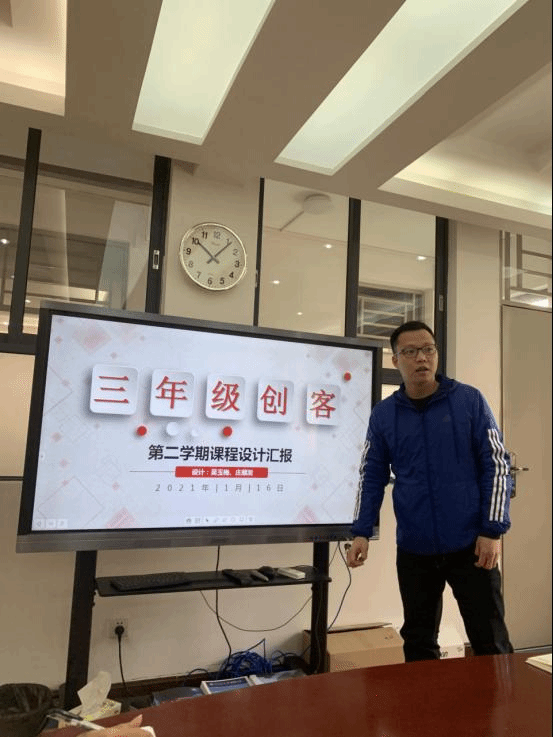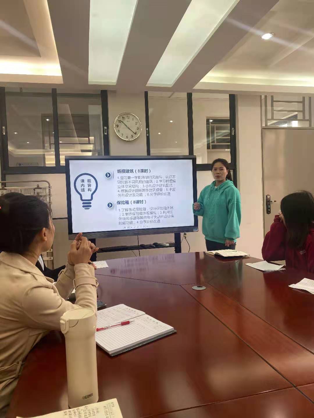 在科创组会议中,一到五年级的任课老师代表汇报本年级下学期的课程内容调整。包括总的设计理念,课程目标,课程项目等做了详细的讲解。