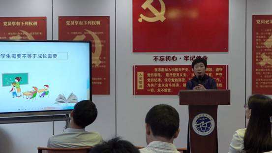 第三位是由来自体艺组的黄婧老师进行分享,她同样阅读了《习近平谈治国理政》第三卷,从自身作为团委书记的工作实际出发,向各位展示了书中的用典智慧,其中“不要人夸颜色好,只留清气满乾坤”这一典故更是让她在工作中指导学生不要在意他人评价,专注做好自身工作。由阅读生发思考进而在工作中实践,值得学习。