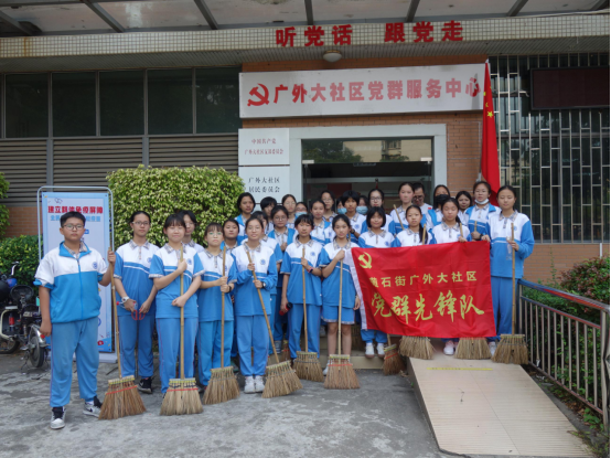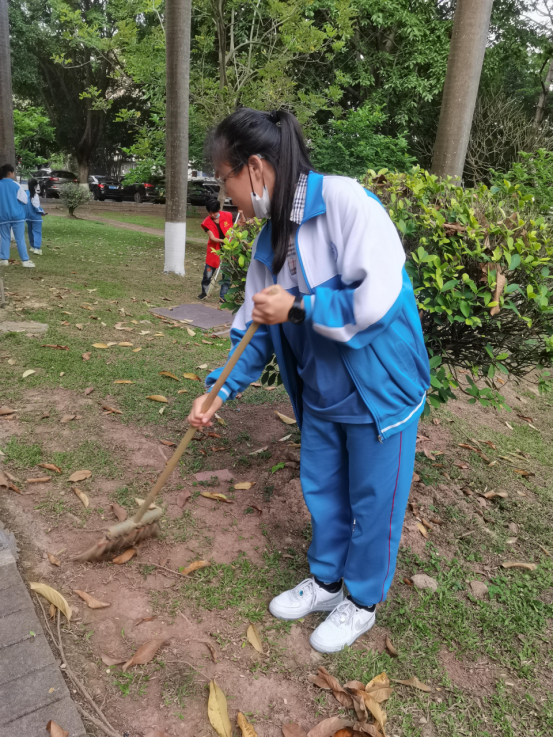 本网讯 4月3日下午,广外附中的学生志愿者参加了广外大社区居委发起的“爱卫大扫除志愿服务活动”。