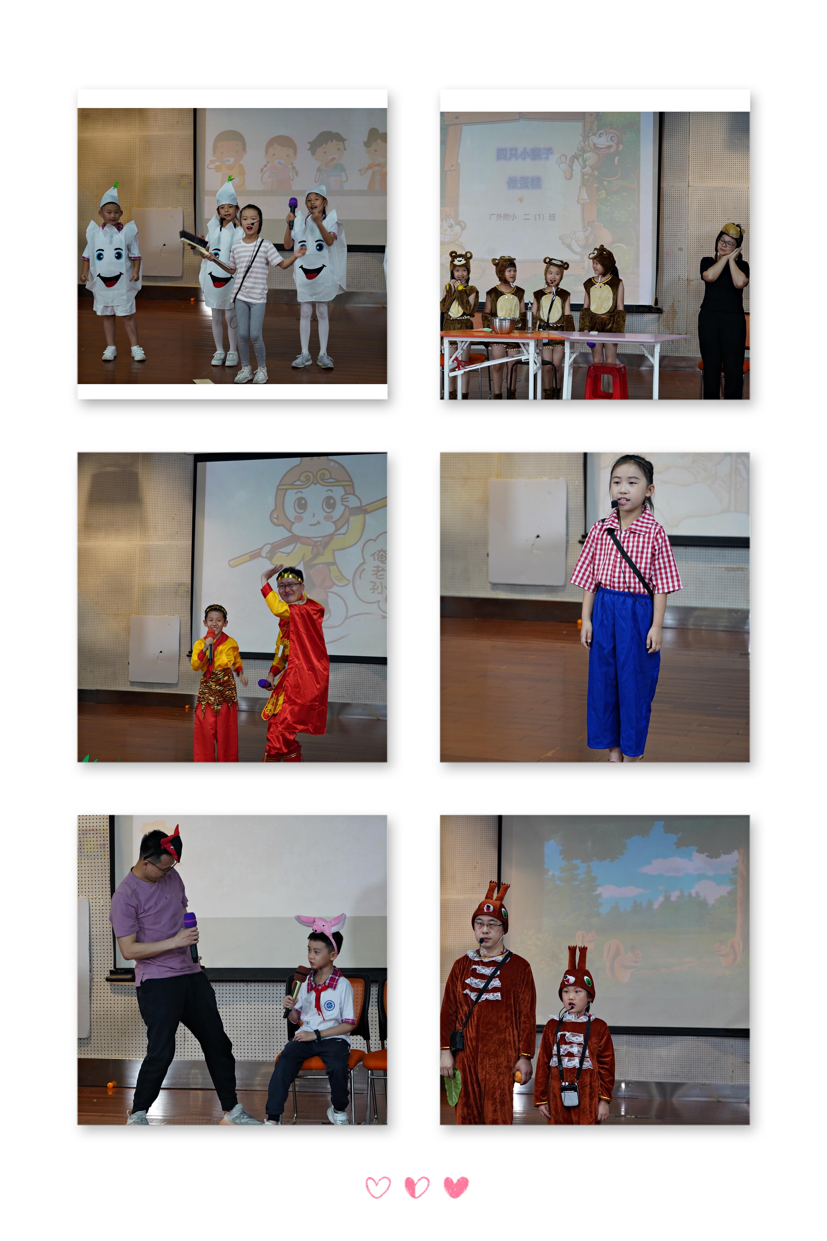 《小壁虎借尾巴》、《要下雨了》、《老鼠嫁女》、《动物王国开大会》、《夏夜多美》、《猴子下山》,这些耳熟能详的课本剧在一年级孩子们的演绎下,赋予了新的内涵。他们的道具新颖别致,表演生动形象,令人有身临其境的感觉。
