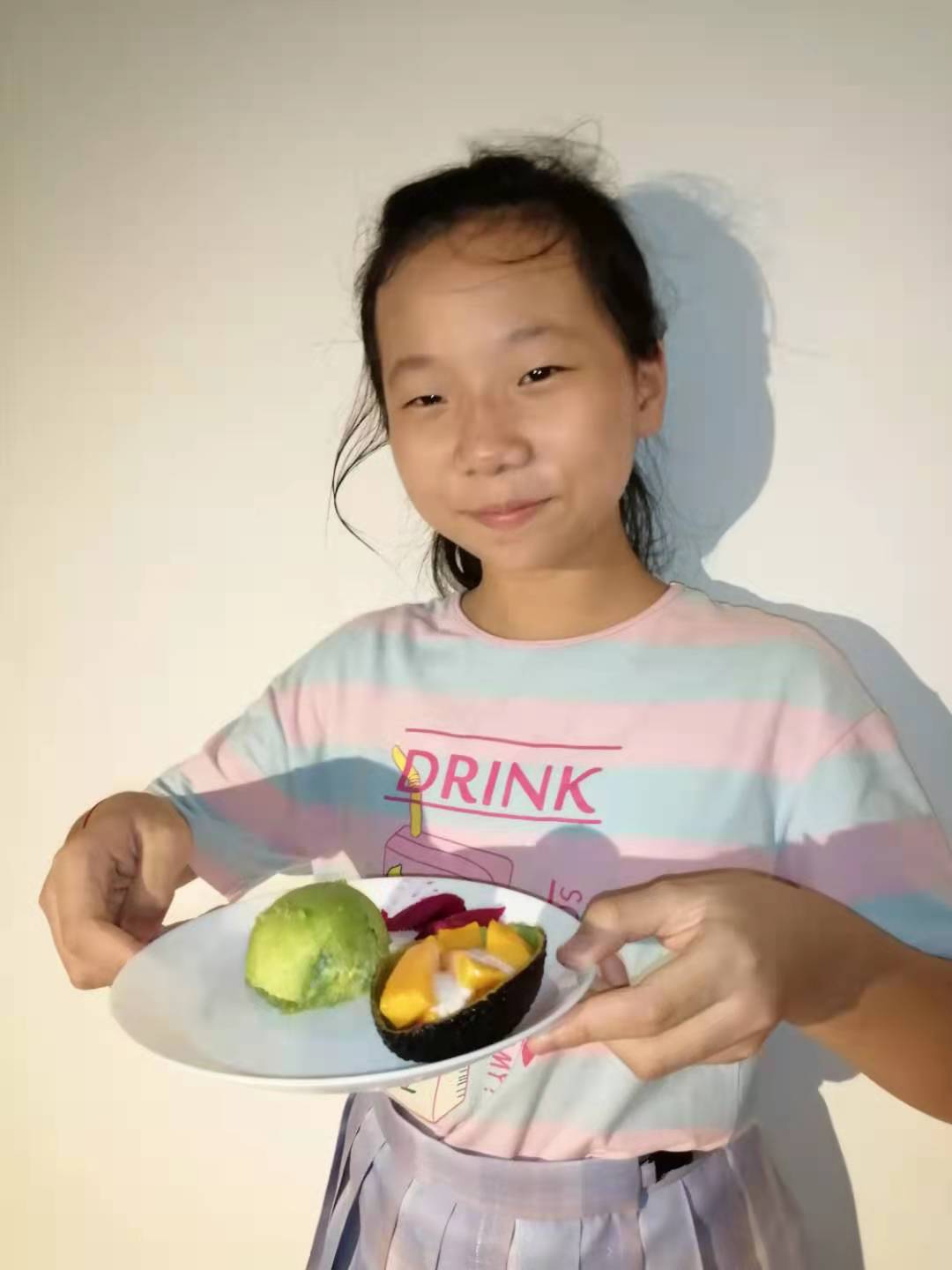 我是朱一方。我做的是自制水果甜品,不仅制作简单,香甜美味,而且颜值超高哦!