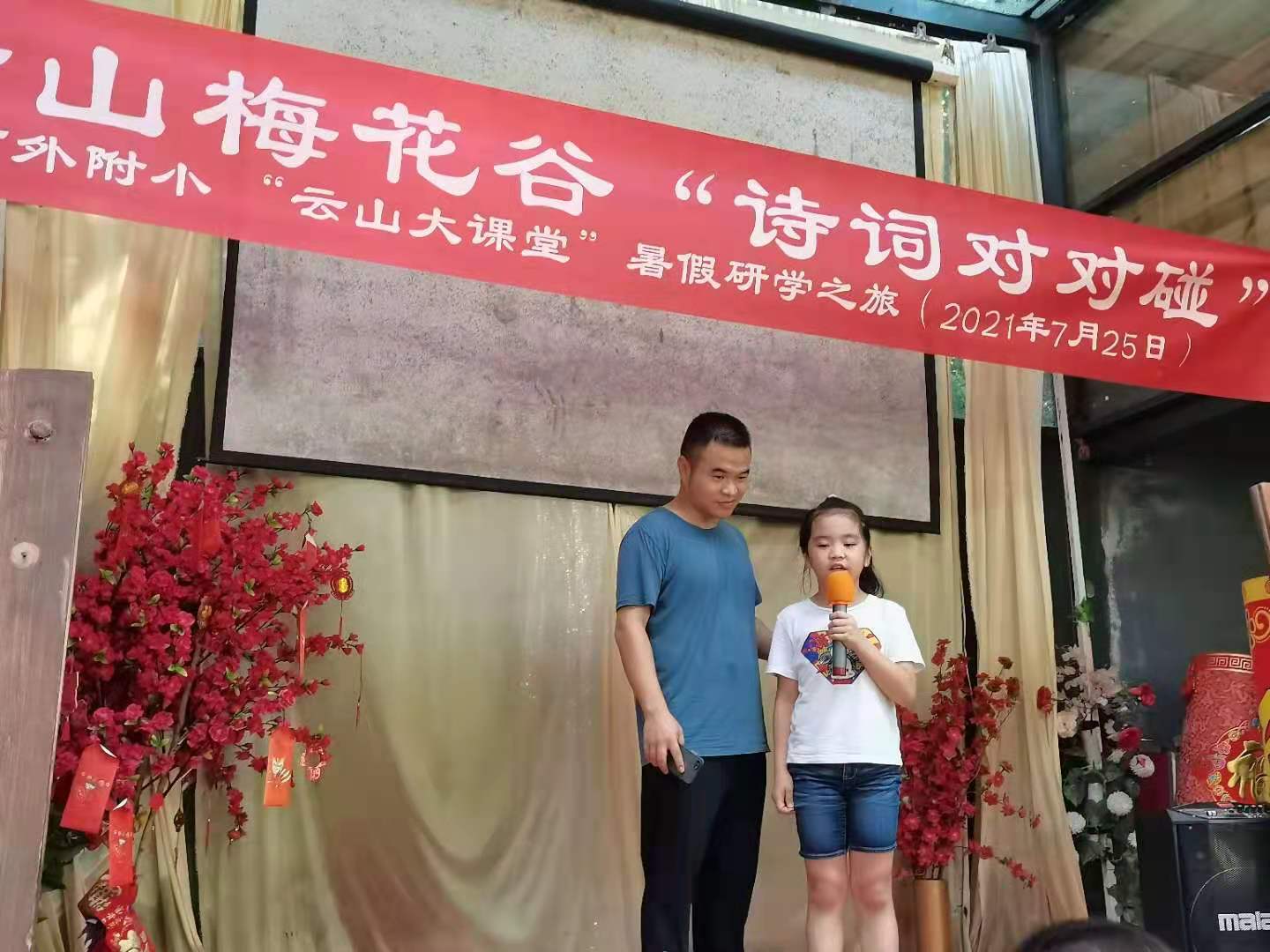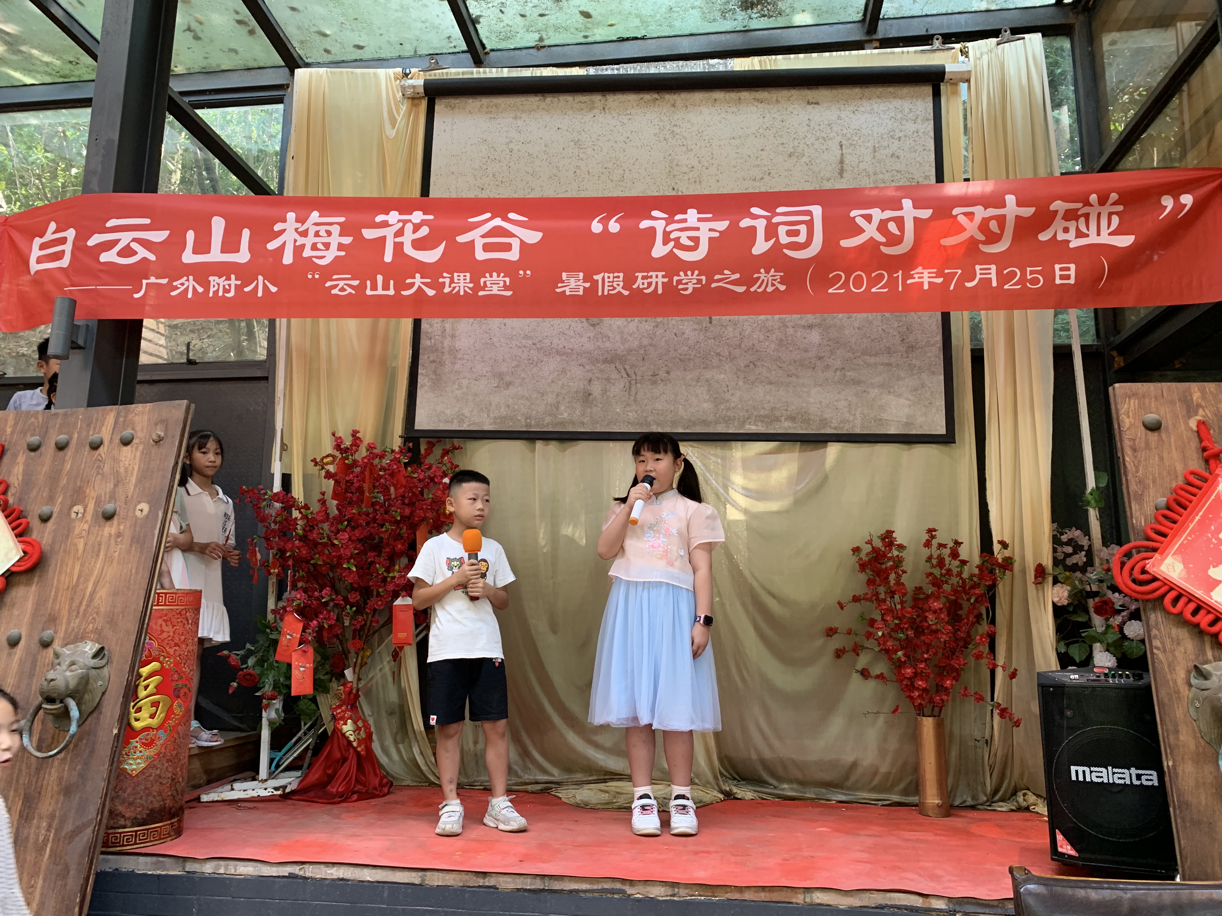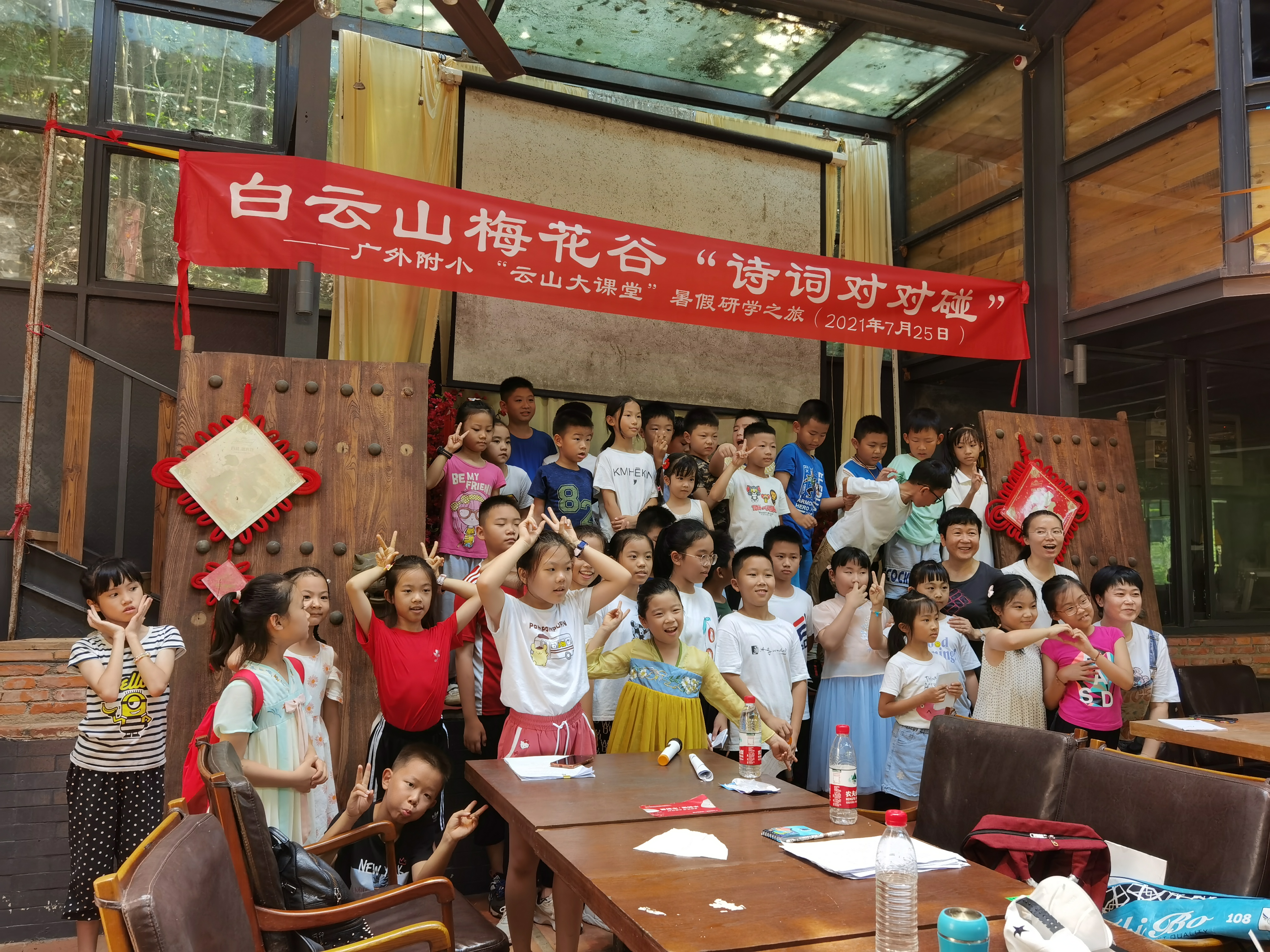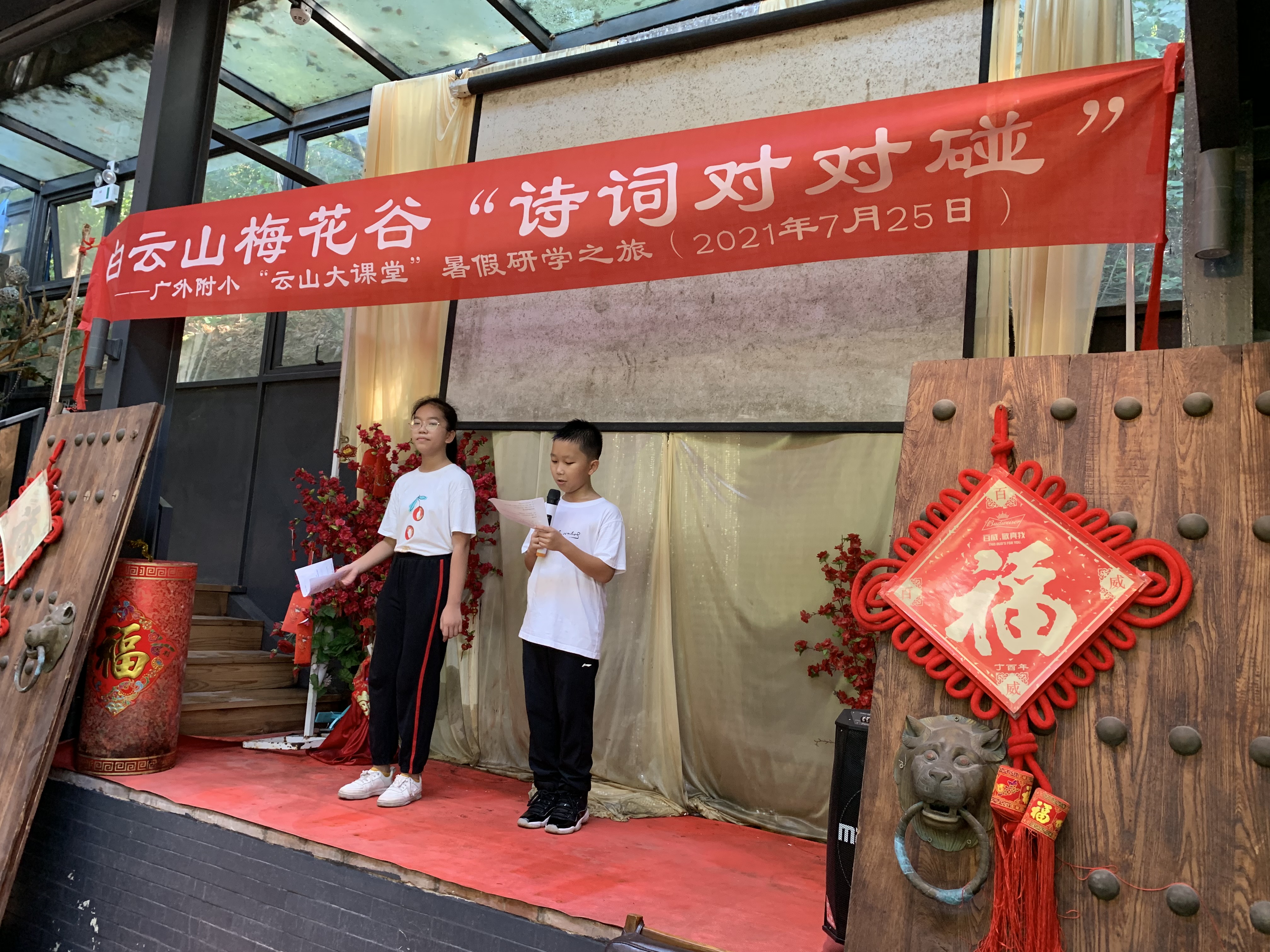 7月25日,为了丰富学生的暑假生活,加深对中华诗词文化的理解和兴趣,在做好疫情防控的前提下,教师发展工作室负责人范秀红老师组织部分师生在白云山的梅花谷开展“云山大课堂”研学系列活动之——“诗词对对碰”。
