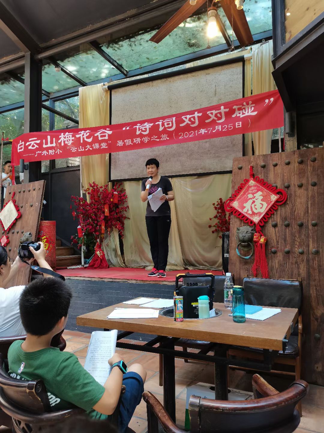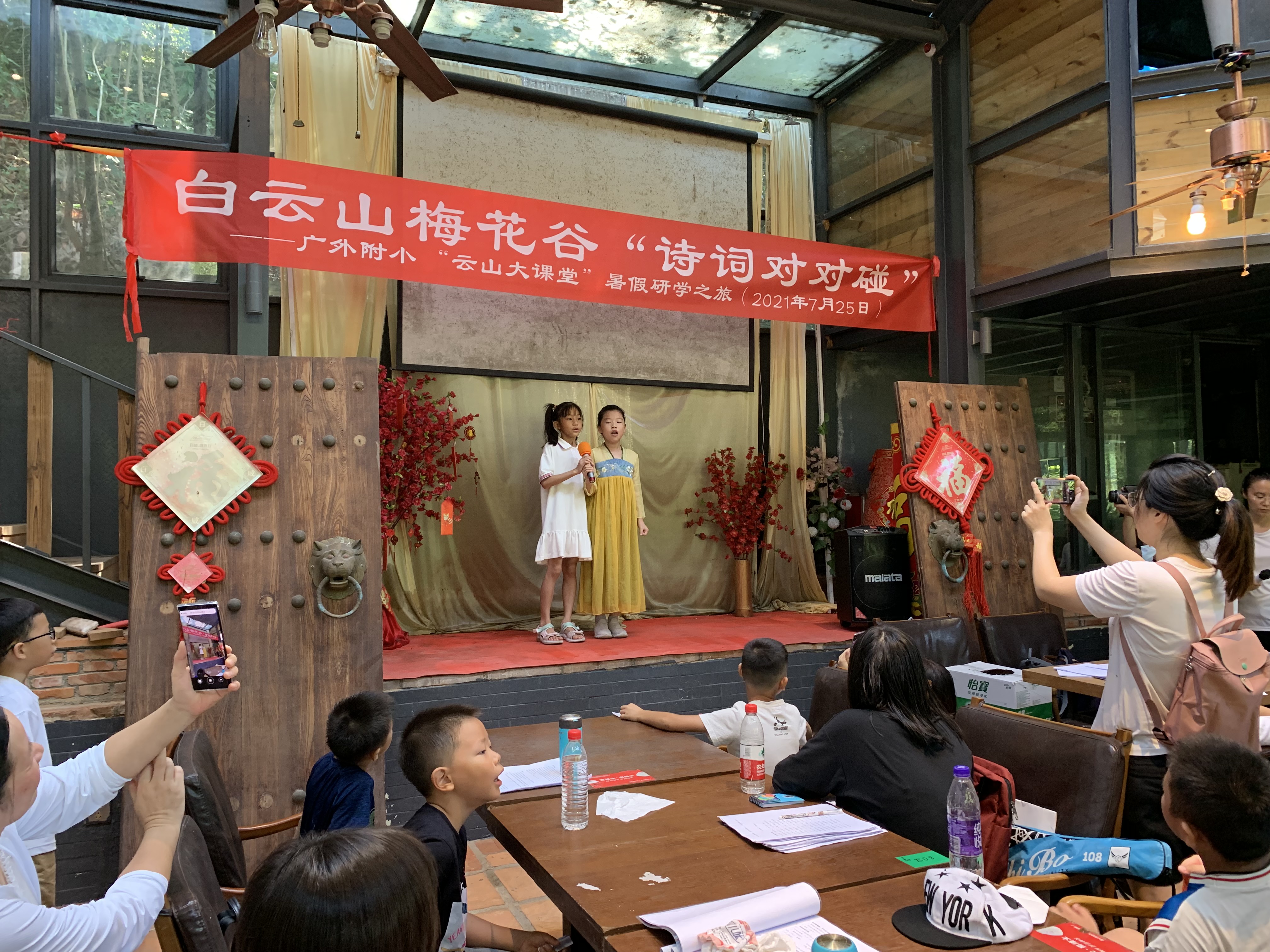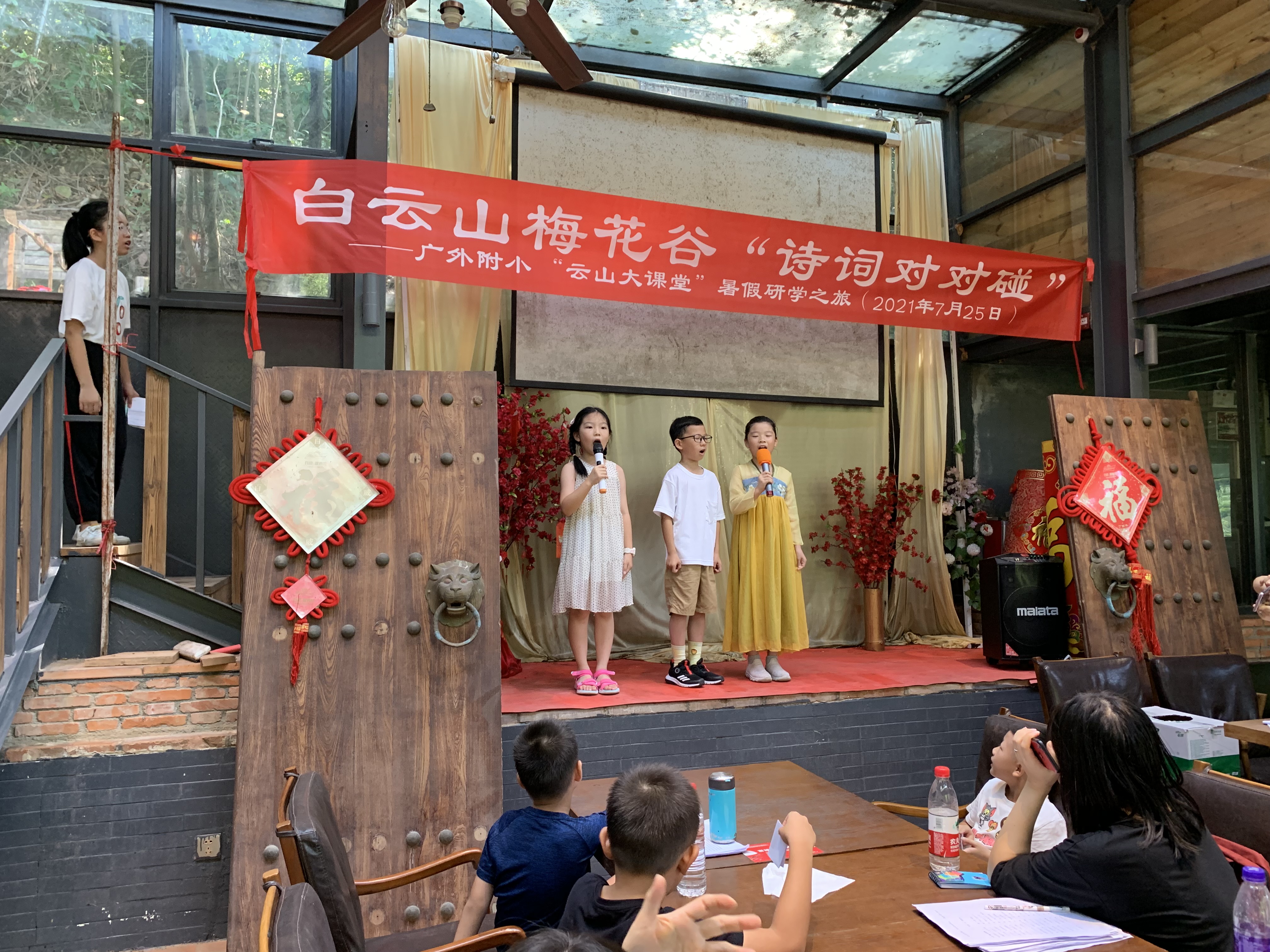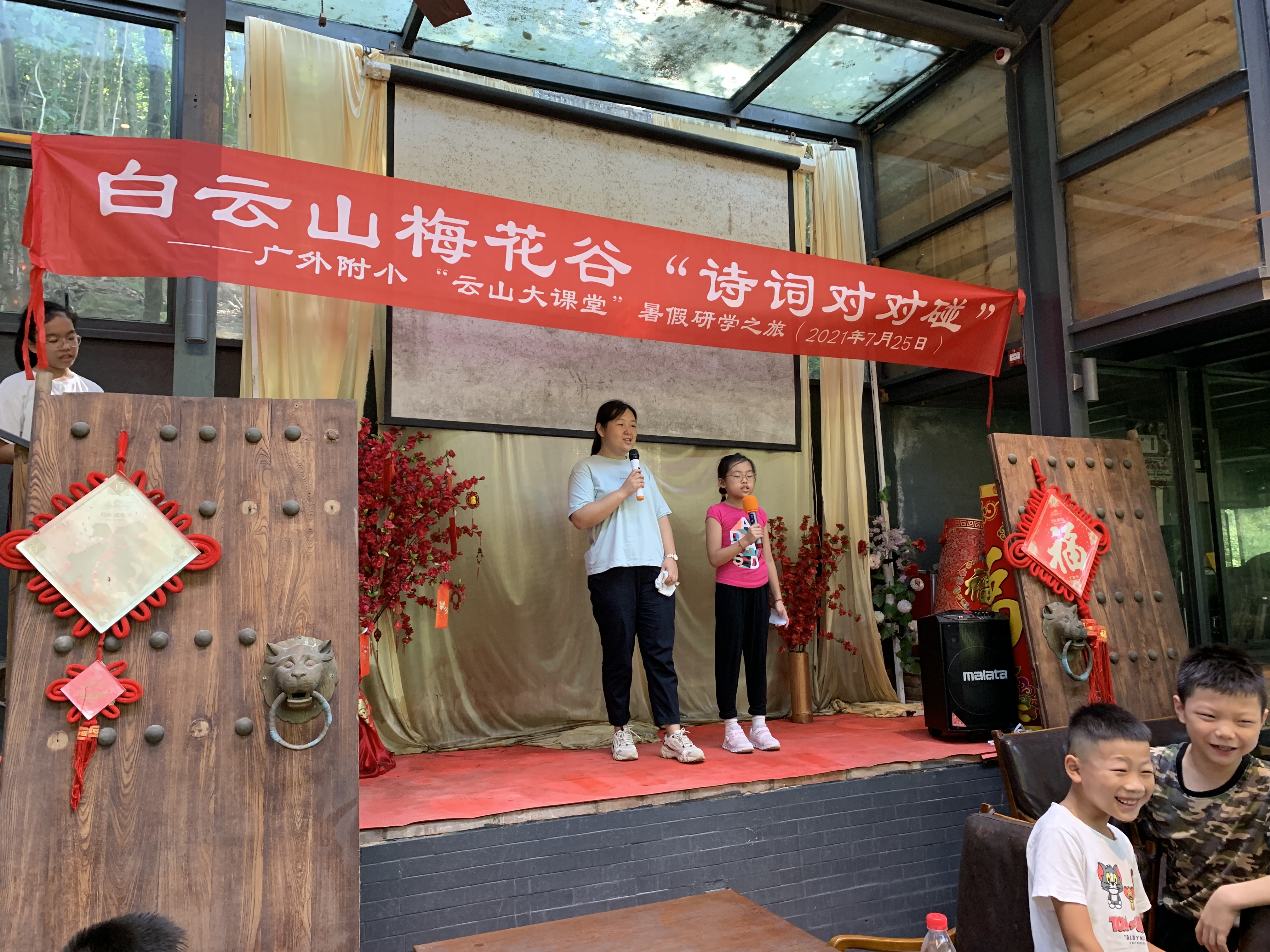 7月25日,为了丰富学生的暑假生活,加深对中华诗词文化的理解和兴趣,在做好疫情防控的前提下,教师发展工作室负责人范秀红老师组织部分师生在白云山的梅花谷开展“云山大课堂”研学系列活动之——“诗词对对碰”。