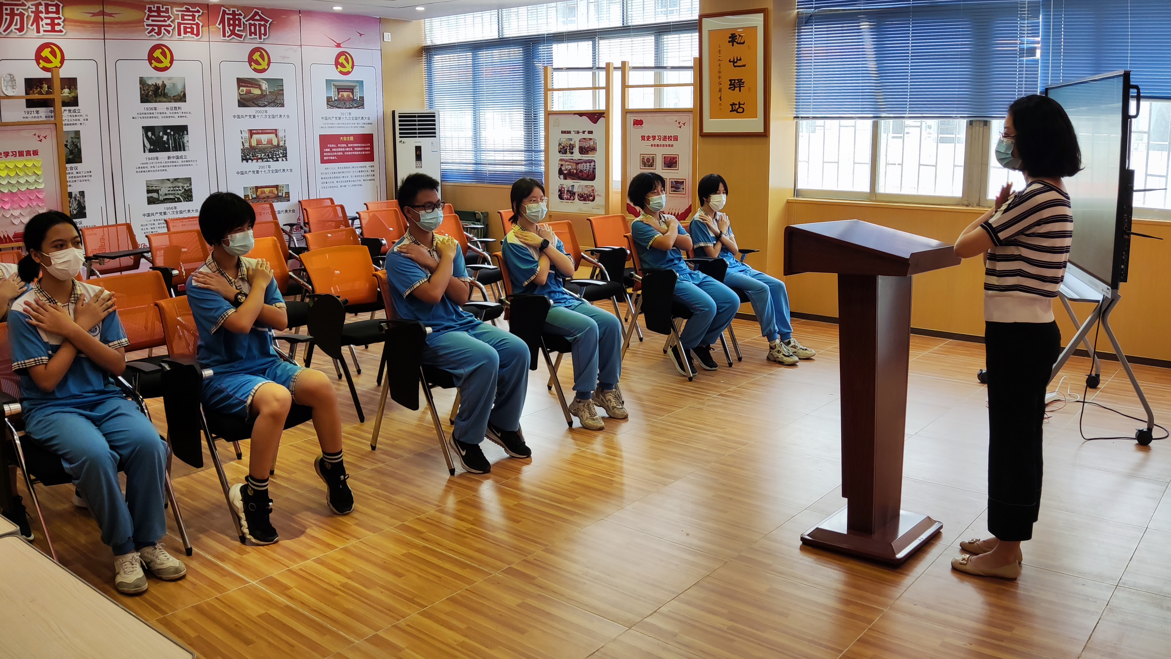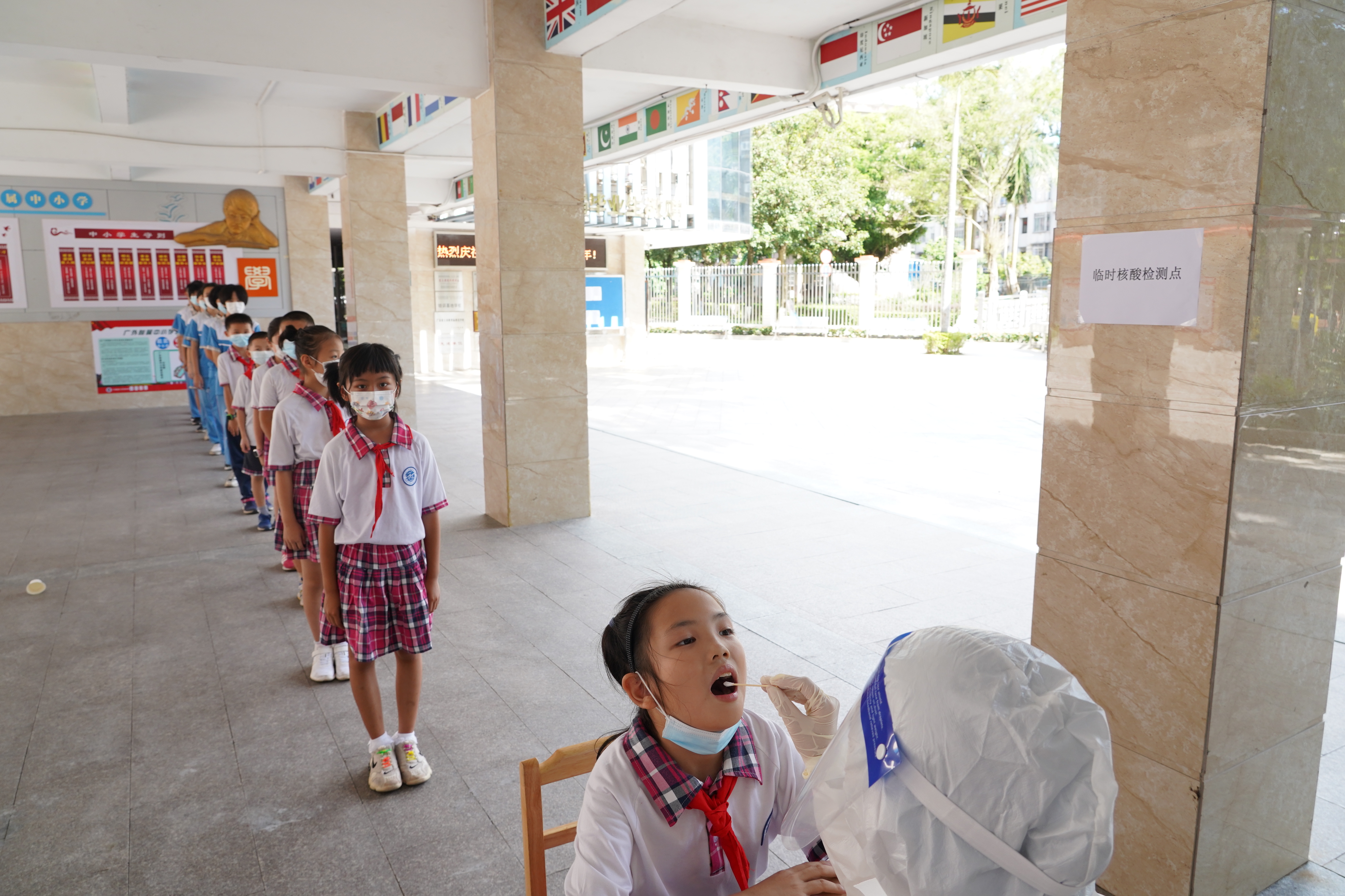 现场模拟演练学校接到社区医院通知,我校一名学生在某社区居民核酸筛查中核酸检测结果为阳性。 “初一某班学生李某昨晚在社区的全员核酸检测结果呈阳性,现在马上指引该生到隔离室……” 随即,学校立刻按照《广州市学校防控新冠肺炎疫情应急处置预案(试行)》要求,启动学校新冠肺炎疫情防控处置应急预案,应急领导组、疫情上报组、物资保障组等6个工作组均马上启动工作。