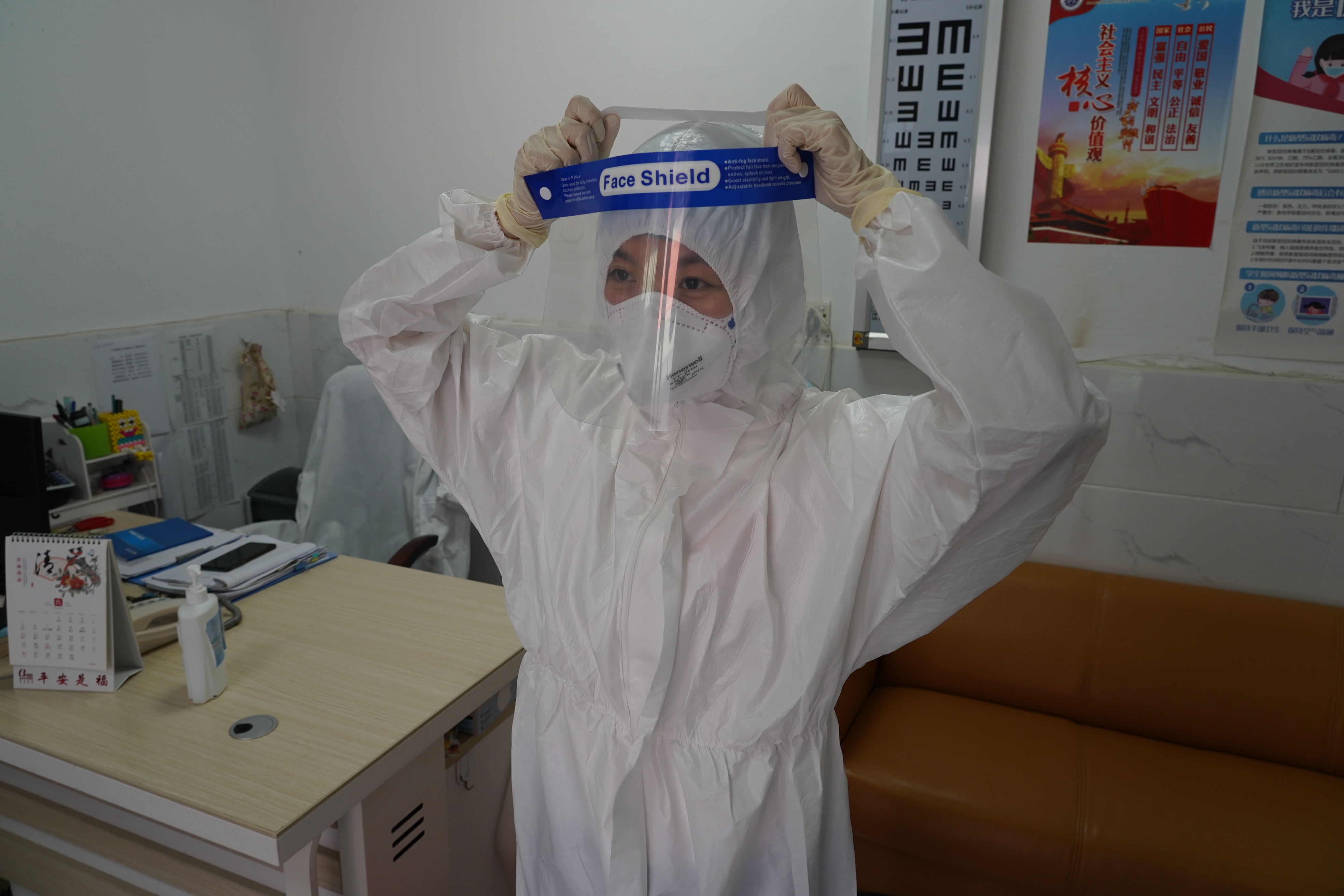 现场模拟3:学校接到社区通知,我校一名学生核酸检测结果呈阳性,学校校医马上穿上防护服,准备前往病例所在班级。