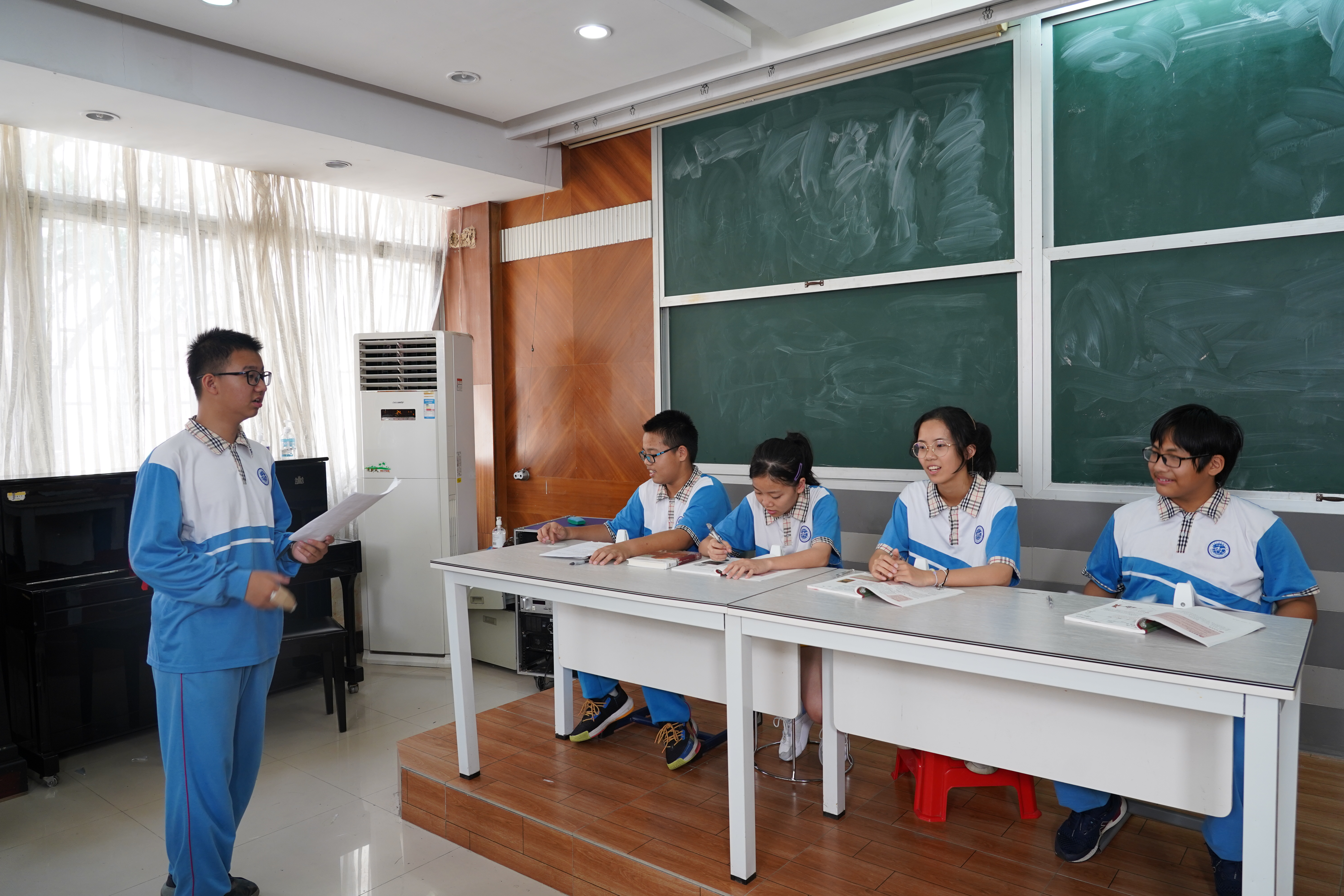 《与宽容同行》这一剧目,围绕竞争——这一校园生活中常见的话题展开,利用心理健康教育课堂,首先在学生中间开展自由的讨论,而后根据学生们自己在生活、学习、交往中发生的心理冲突、烦恼、困惑逐步扩展,依托学校心理学生社团,鼓励学生们在编排剧本、组织和表演过程中充分发挥自身主体性,重过程、强体验,把“大道理”用“小剧目”形式表现出来。在本剧中,孩子们在磨剧本、排剧目的点滴过程中,体会了对友情、信任、嫉妒与宽容等交织的复合情感,也深刻的认识到了竞争不可避免,开展良性竞争不仅有利于同龄人之间的相互学习,同时也是自我内心成长中的重要一课。