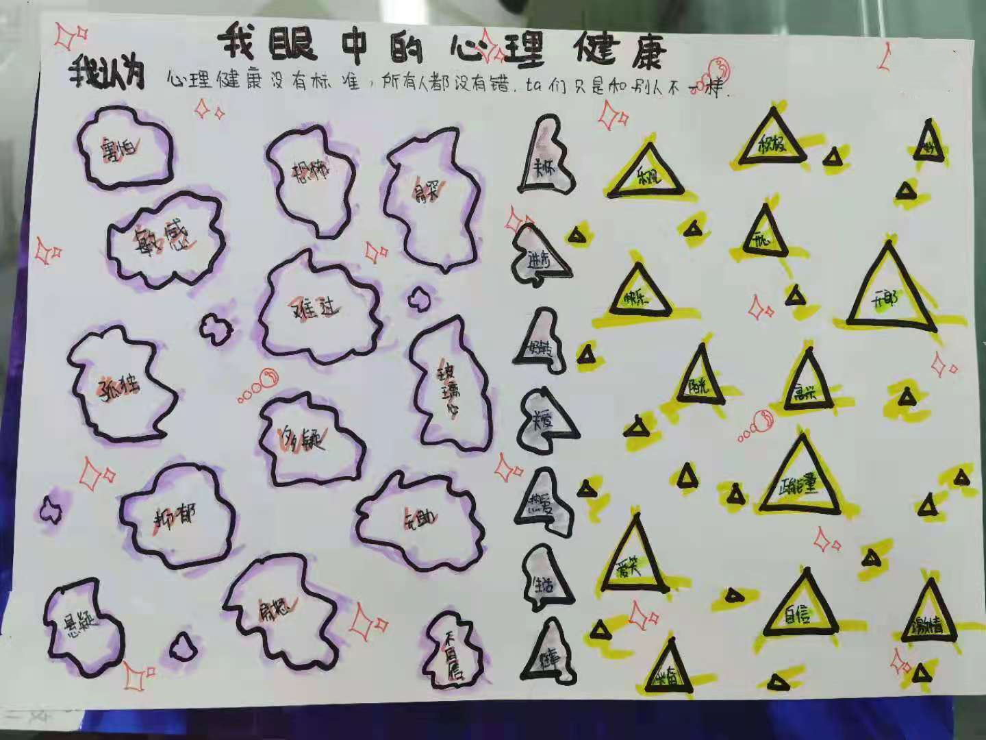 通过“我眼中的心理健康”主题的心理绘画作品,我们可以进一步了解孩子,看一看孩子们眼里的心理健康是什么样的。与此同时,相信孩子们在不受限制的创作过程中,对心理健康也有了更多的思考和超乎课堂之外的收获。