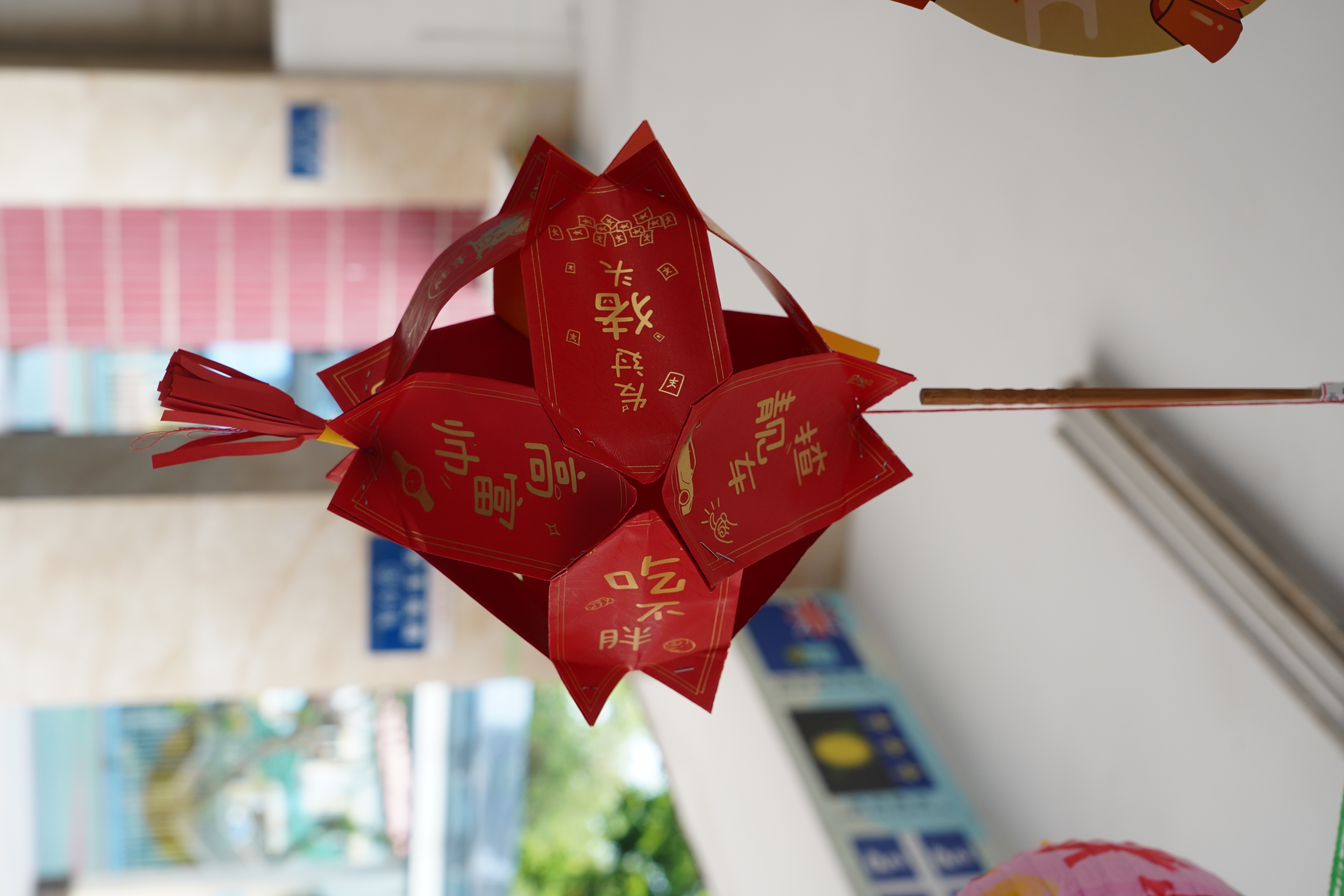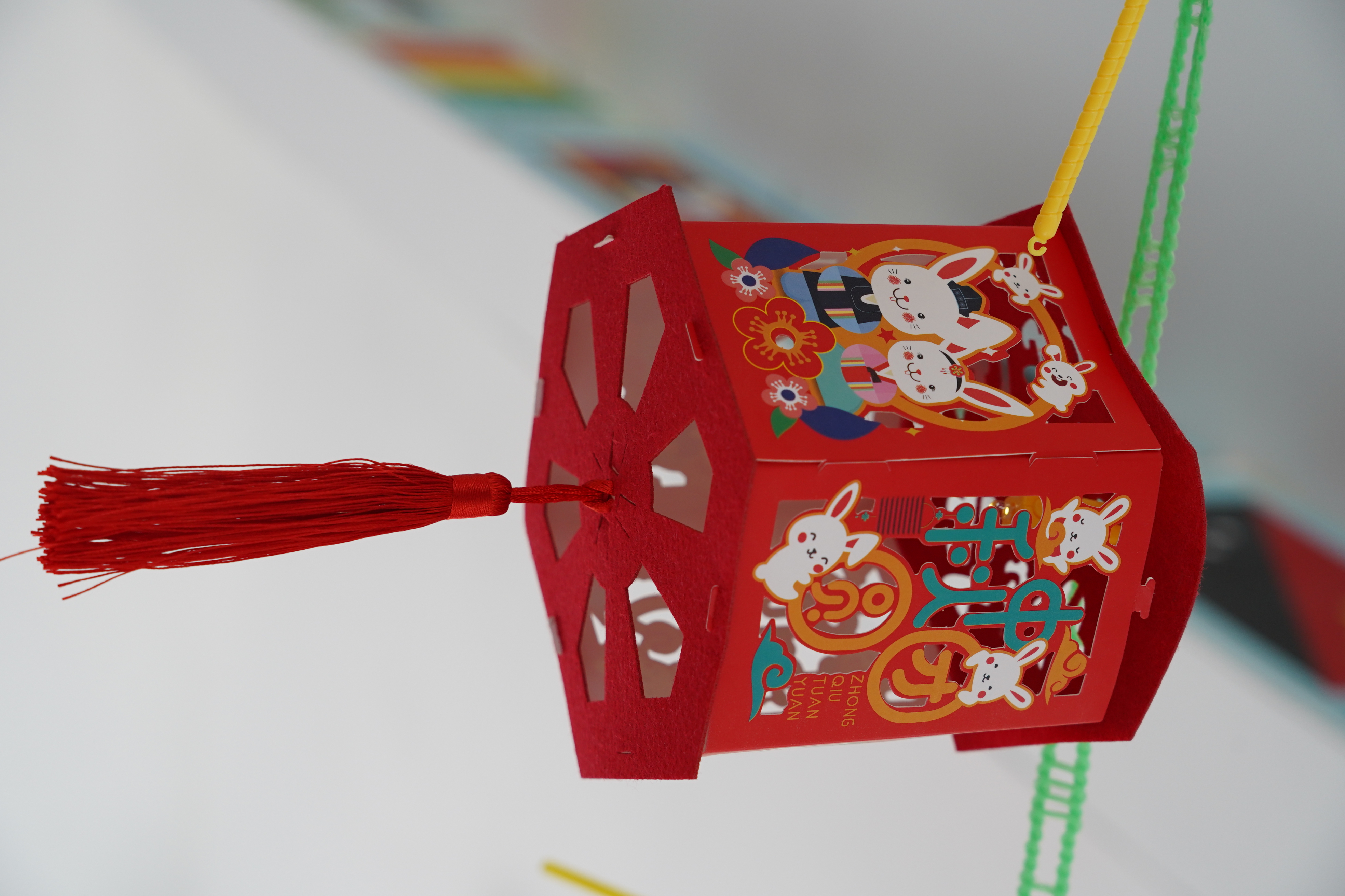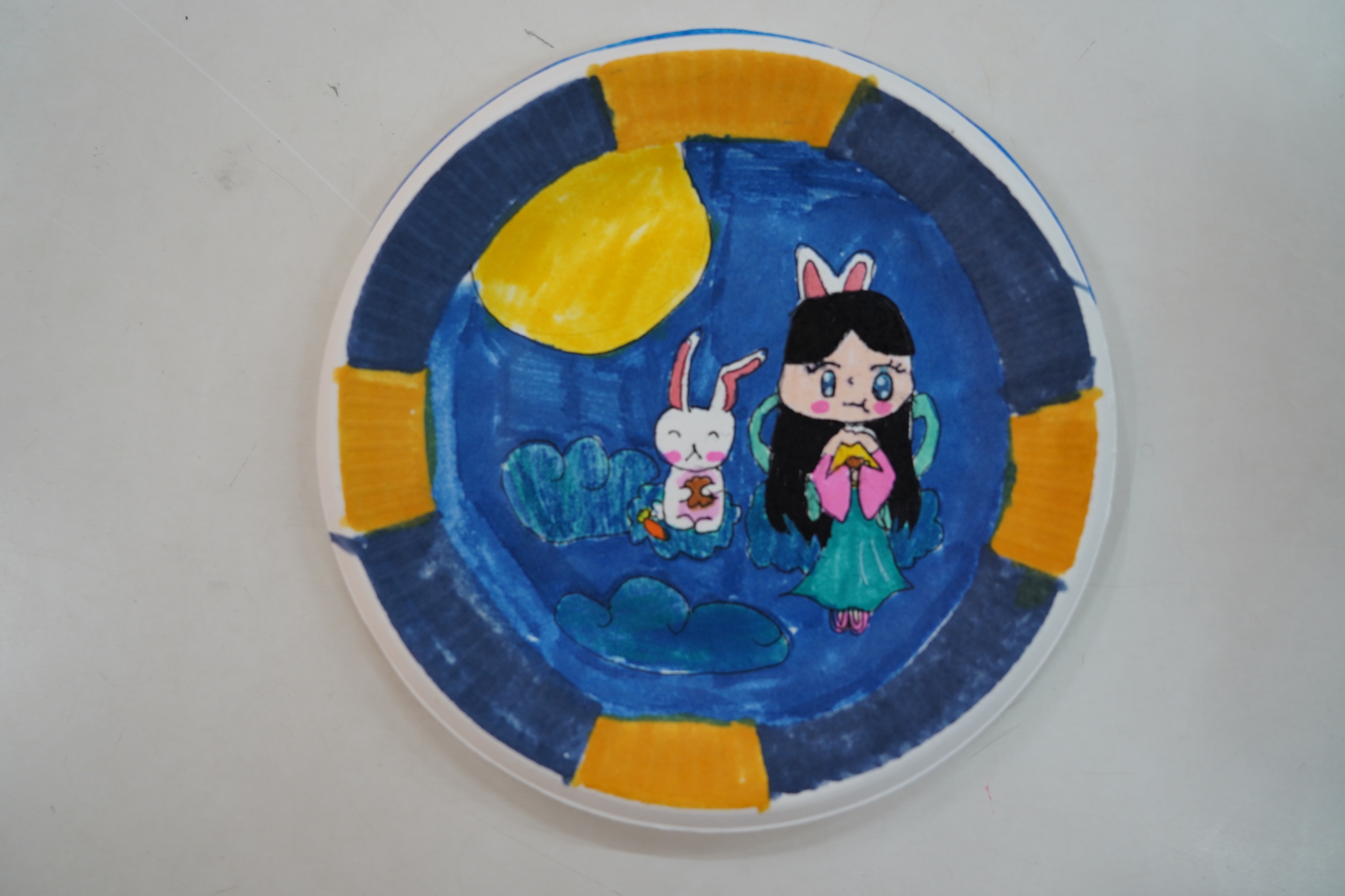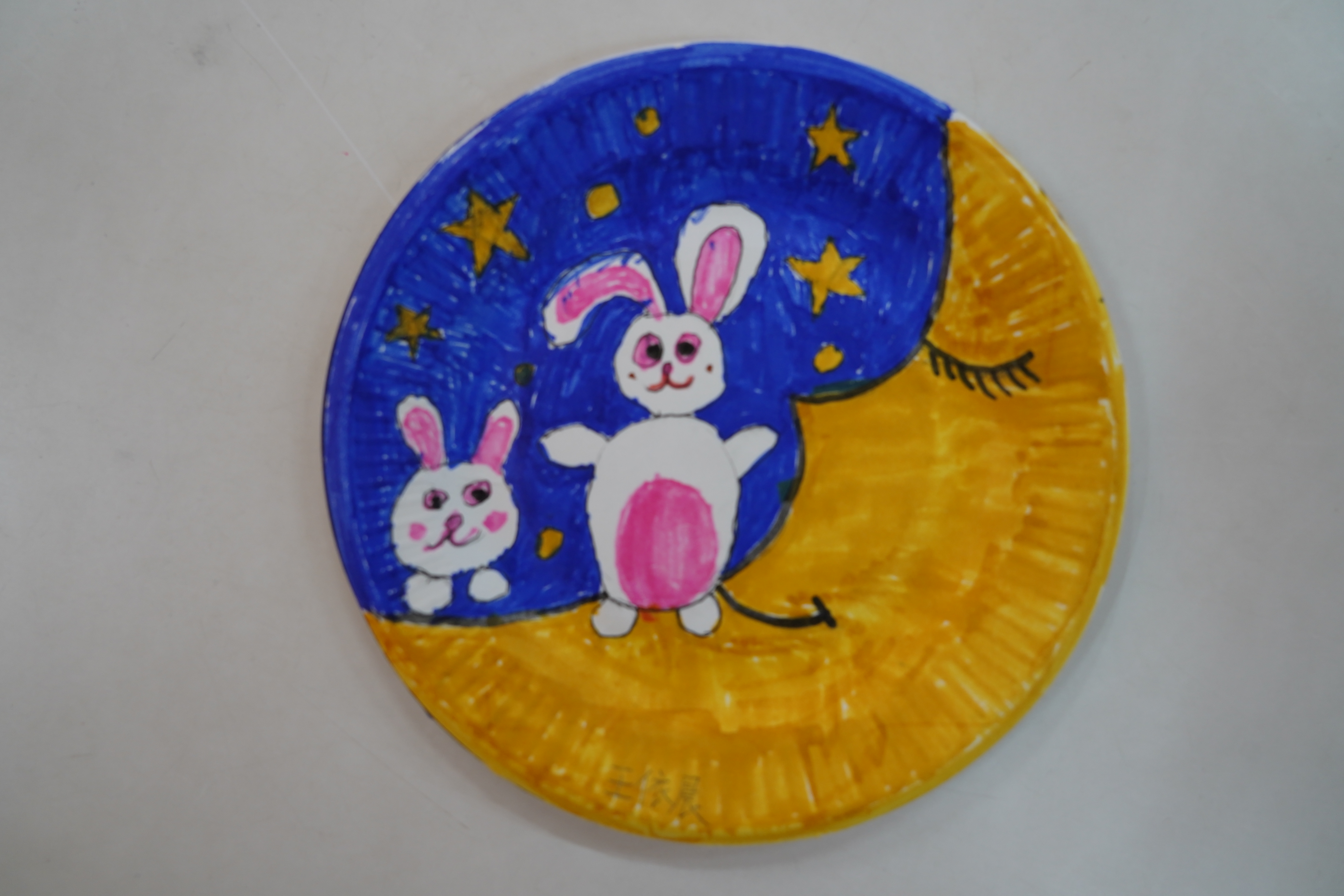 此外,一至三年级的同学们还画了纸盘画,他们用丰富的想象力、缤纷的色彩把他们对中秋佳节的理解描绘在纸盘上。四至六年级的同学们则制作手工灯笼,灯笼形态各异,制作精美,为校园增添了另一番风景。