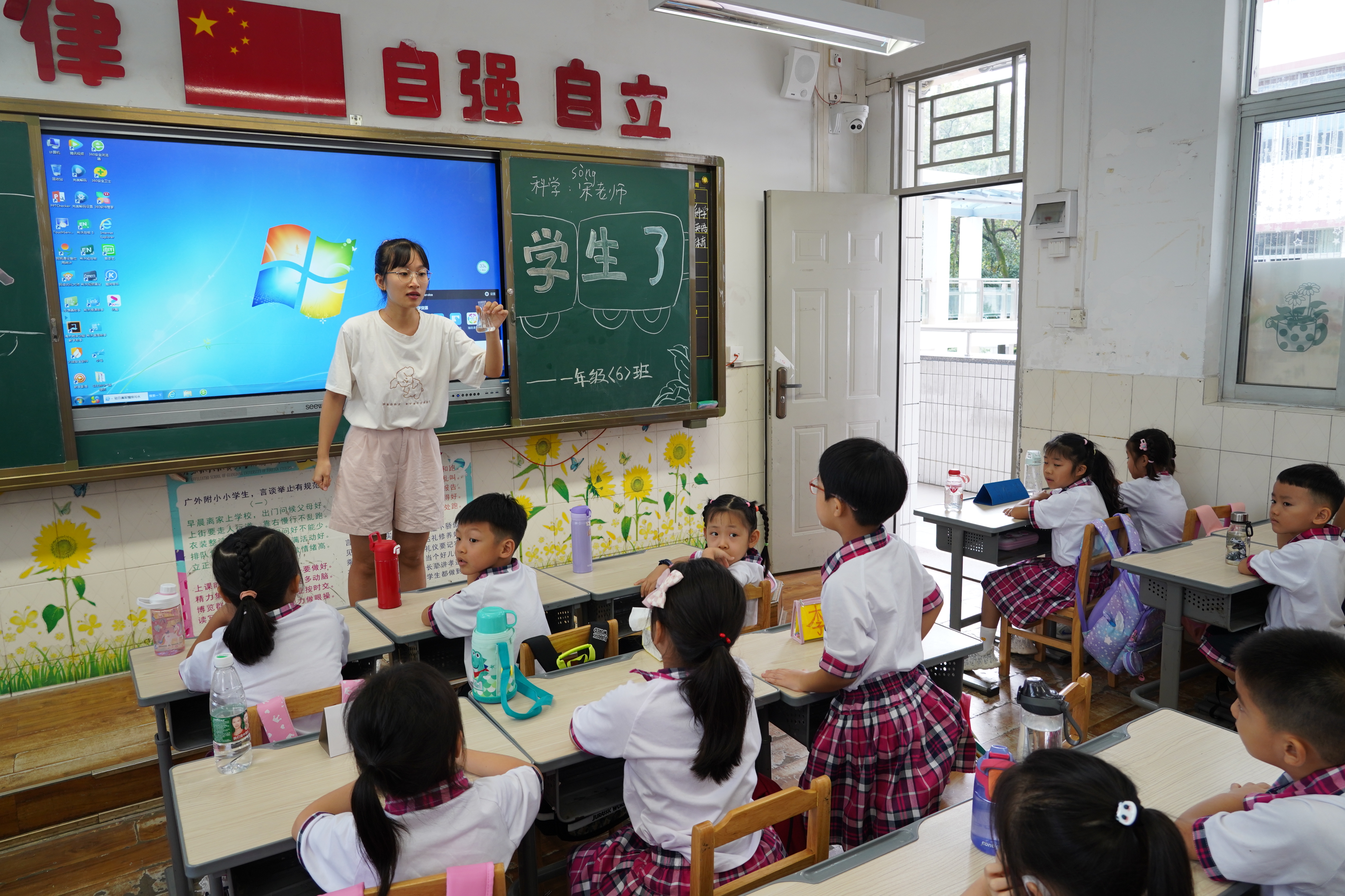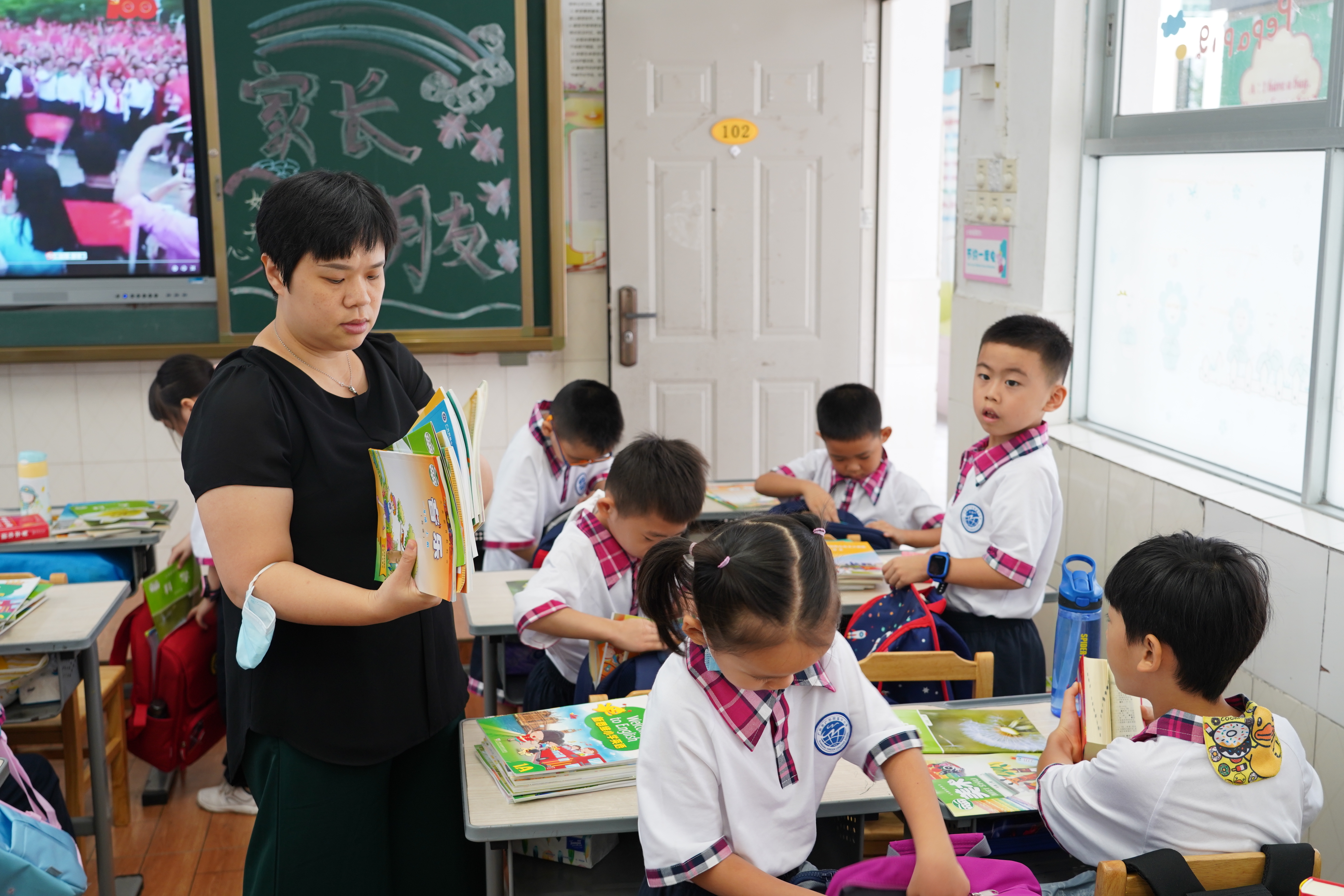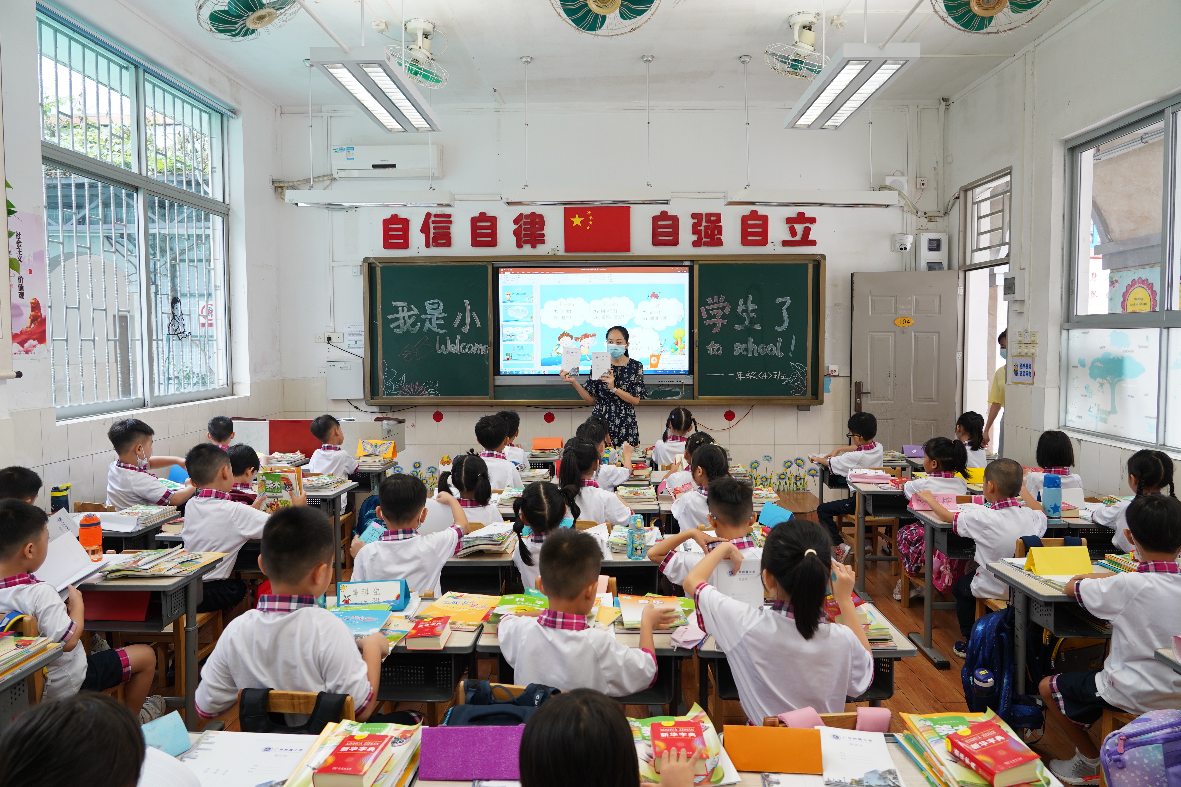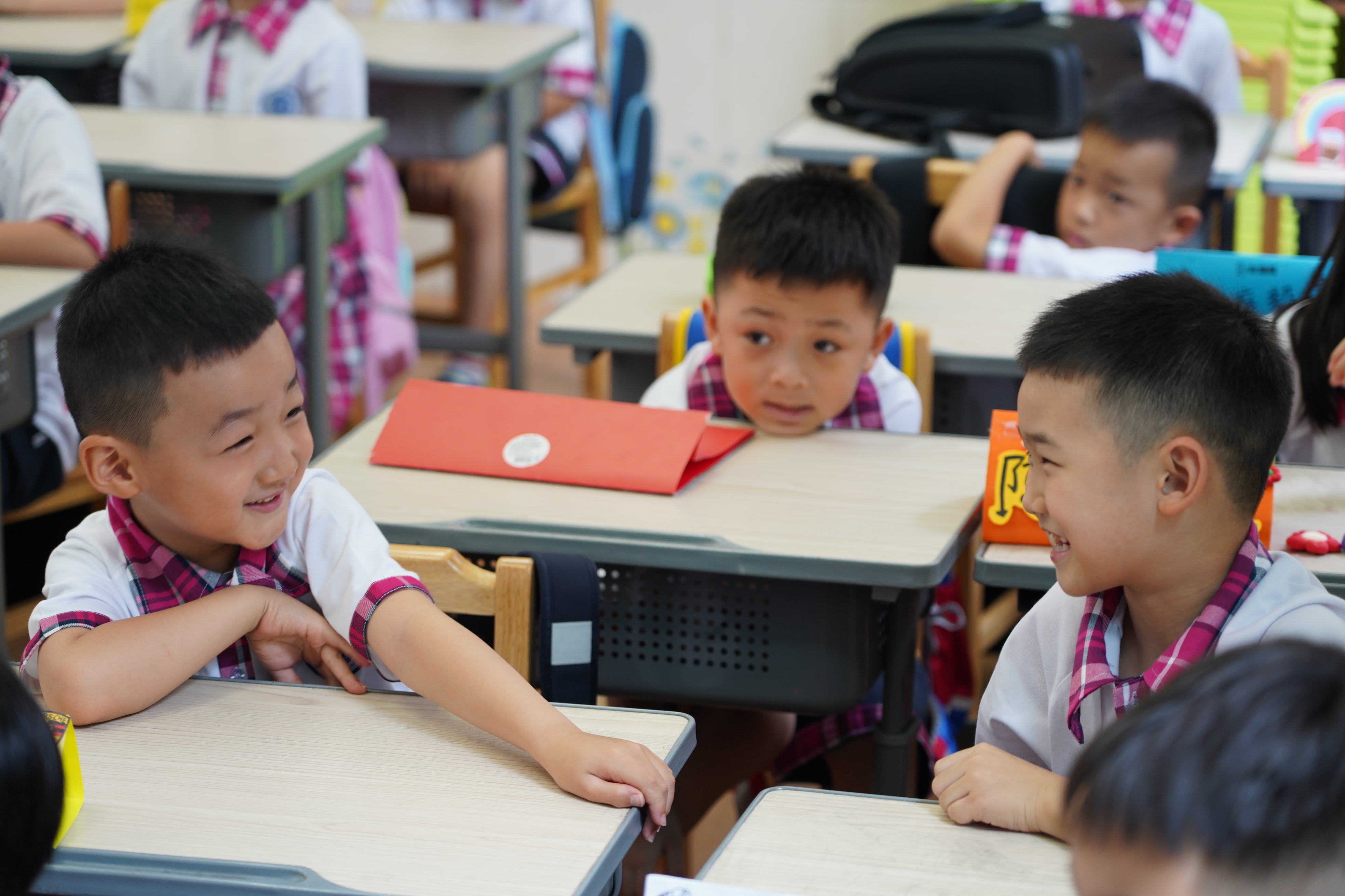 经过了炎热的夏天,离开了熟悉的幼儿园,孩子们来到了广外附属中小学,成为了一名背着书包的小学生。崭新的校园,宽广的操场,他们感到新鲜、激动,还有些紧张。他们会想这里有什么好玩的呢?老师会不会喜欢我呢?学校的饭菜好吃吗?当他们看到老师亲切的笑容时,他们会想起自己的妈妈,就会说:“老师就是妈妈。”有同学说:“学校就是我的家,在这个大家庭里,有许多的小伙伴和我一起玩,我感觉温暖和快乐。”久而久之,同学们很快就适应了学校的生活,每天都是开开心心地上学校,平平安安地返家去。