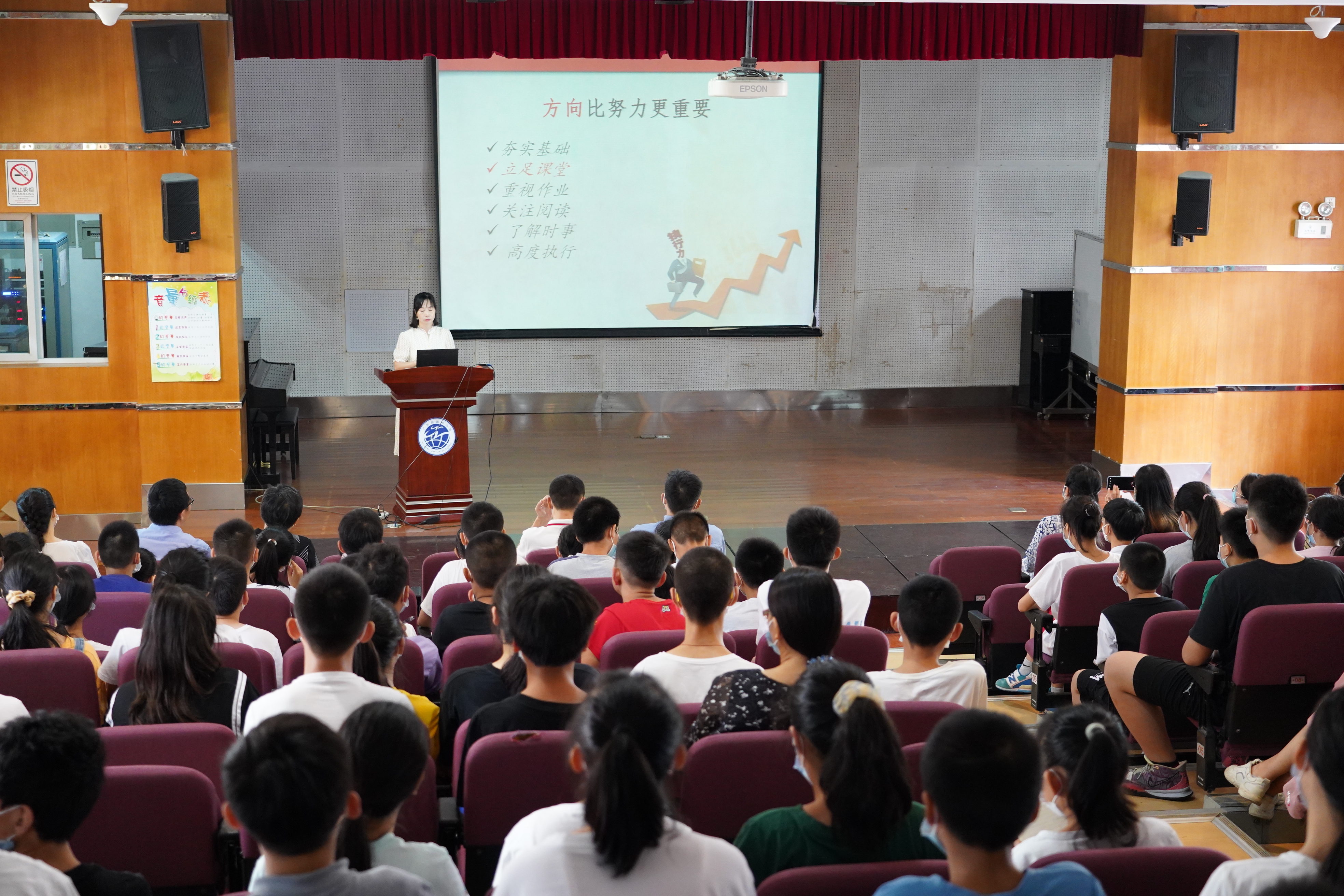 在8月30日,初一也进行了入学前教育。首先在礼堂举行了年级集会,中学课程教学中心主任胡琴、中学学生发展中心主任林旭丽、级长程向阳和校长方建军分别对新生们在校的学习、生活提出了要求和期许。随后,同学们回到各班教室开主题班会,由班主任引导学生学习中学生守则及学校的规章制度。通过严肃的入学前教育,同学们少了一些稚气,多了一些成熟,少了一些迷茫,多了一些坚定,为正式开启初中学习打好了基础。