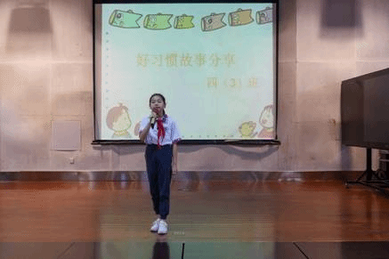 紧接着,四(3)班和四(5)班同学,分别用讲故事和三句半的形式,告诉我们养成好的习惯对我们来说百利无一弊,并且为我们养成好的文明习惯,指明了方向。