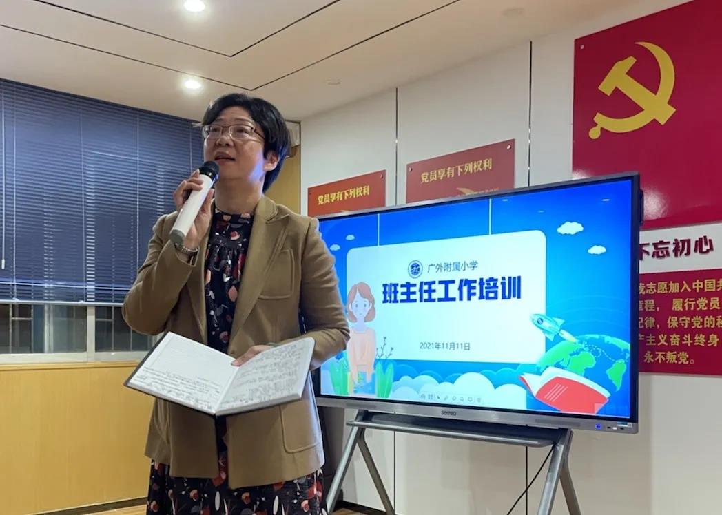 为更好地提高广外附小班主任的育人水平,2021年11月11日16:40班主任培训会议在附小党群活动室开展。本次培训邀请广东第二师范学院殷丽萍教授做主讲嘉宾。学生发展中心主任郑文静做会议主持,校长助理张慧华、学生发展中心副主任余凤及一到六年级年级级长和班主任参加本次培训会议。