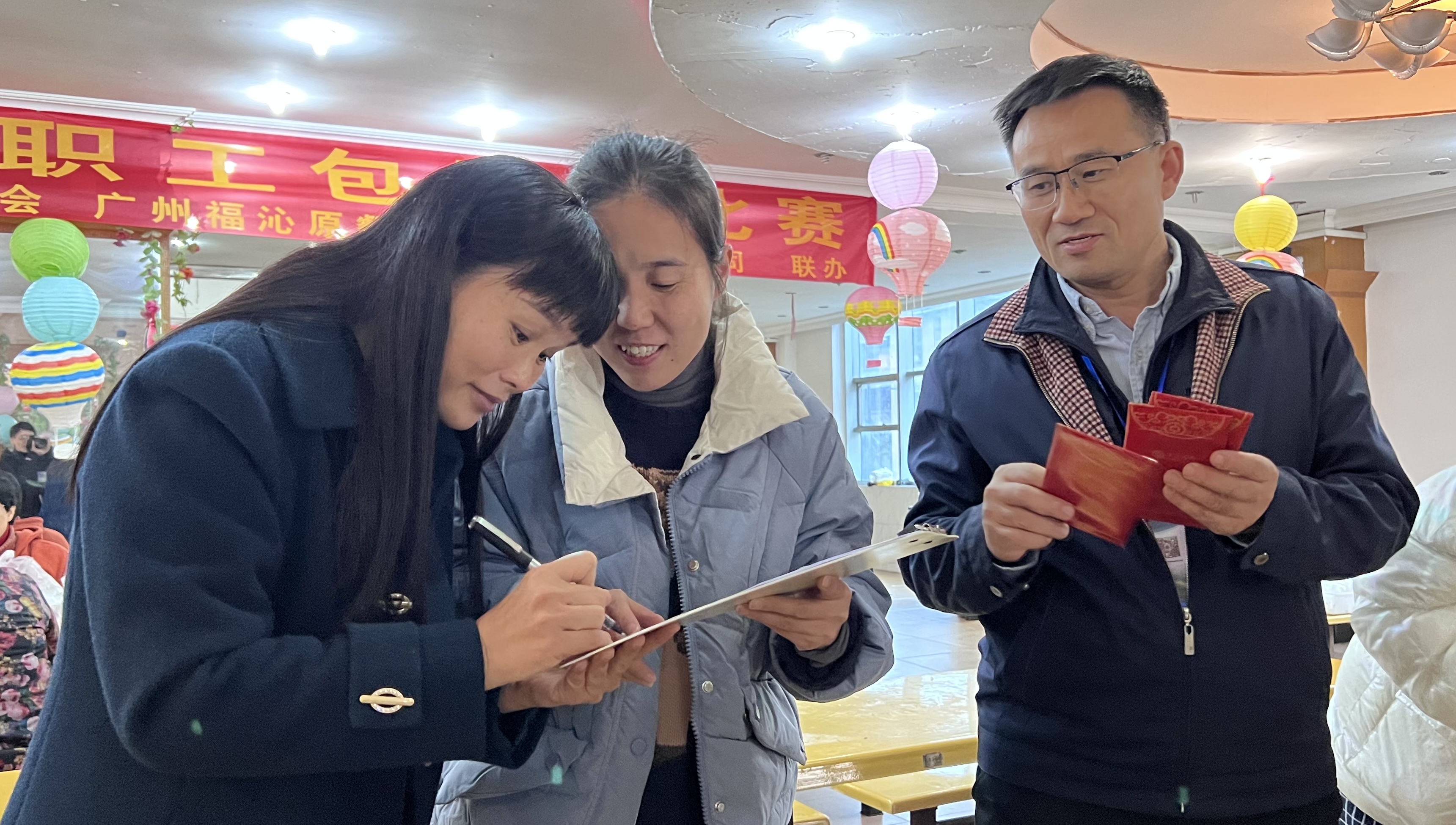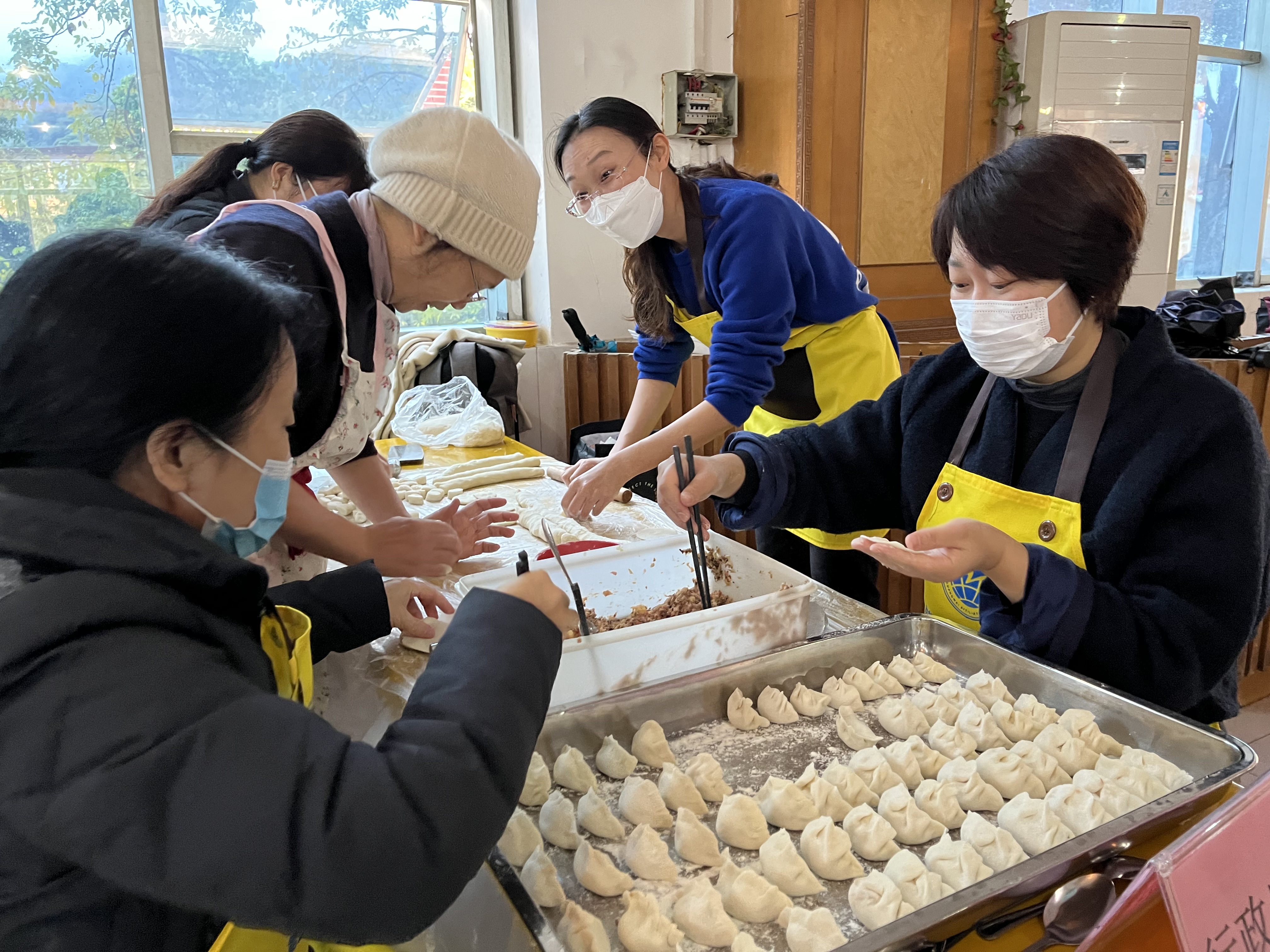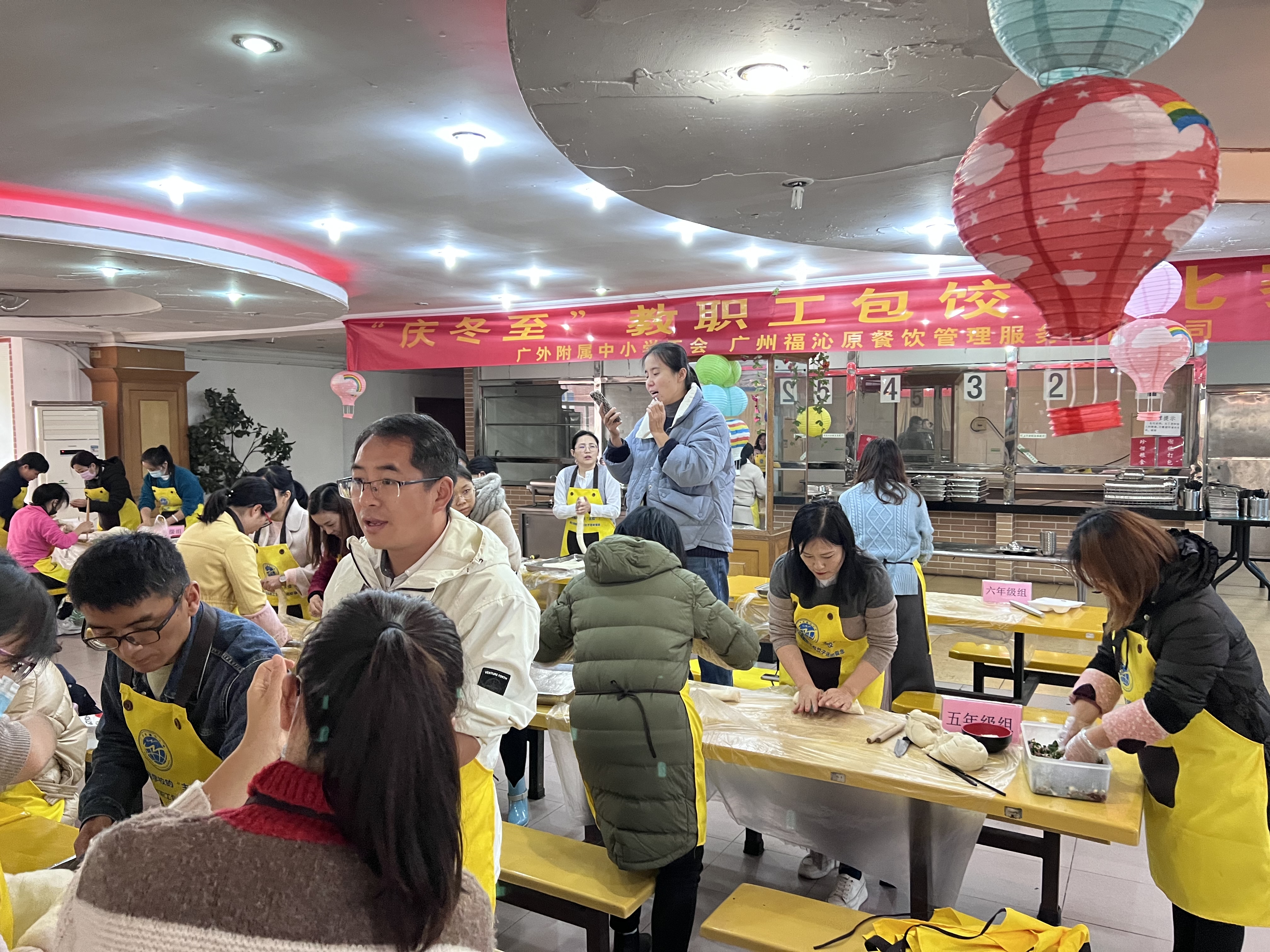 本网讯 冬至是中国一个重要的节气,在中国传统习俗中,有“冬至大如年”的说法。12月21日上午,由学校工会主办,广州福沁原餐饮管理服务有限公司承办的庆冬至教职工包饺子比赛在就餐点进行。50多名来自10个年级组的教职工进行了激烈的比拼,大家在动手的乐趣中欢度冬至,一同感受“冬至大如年”的浓厚氛围。