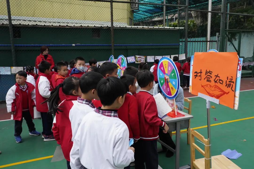 一年级的期末游园,对孩子们来说是一场幸福的活动,因为它有着丰富的形式,有趣的项目。一年级的游园,对老师们来说,是一场重要的活动,因为它可以看出孩子们一学期的学习成果。冬日暖阳下的篮球场上,你既能看到一年级孩子们专注认真答题的小脸庞,更能听到他们开怀愉悦的笑声。