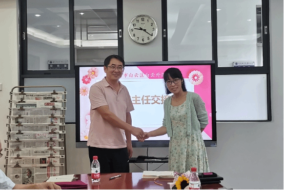 学校的发展,离不开一支有战斗力、有奉献力、有凝聚力的班主任团队。白云外国语中学发展五十多年以来,涌现过许许多多优秀的老班主任,也迭代培养了一批批能干的骨干班主任。因学校工作的调整需要,部分班级的班主任出现了调整,学生发展中心胡琴主任宣读调动班级及原班主任名单,肯定了原班主任们的辛勤付出,接下来为老班主任举行答谢仪式。涂筱辉副校长为老班主任赠送小礼品表示感谢,新班主任上来与老班主任握手合照完成交接仪式,仪式虽小但温馨,彰显团队的温暖。