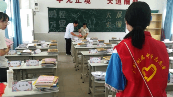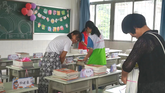 活动主要围绕着搬运书籍,布置课室,分发课本进行。同学们用认真积极的态度迎接新同学的到来。在初一年级级长靳保玉老师的指挥下,和各班主任老师们的辅助指导下,大家紧锣密鼓,有秩序,有条理的完成各自分内的工作。为初一同学们的课室渲染上了一种朝气蓬勃 充满阳光的氛围。