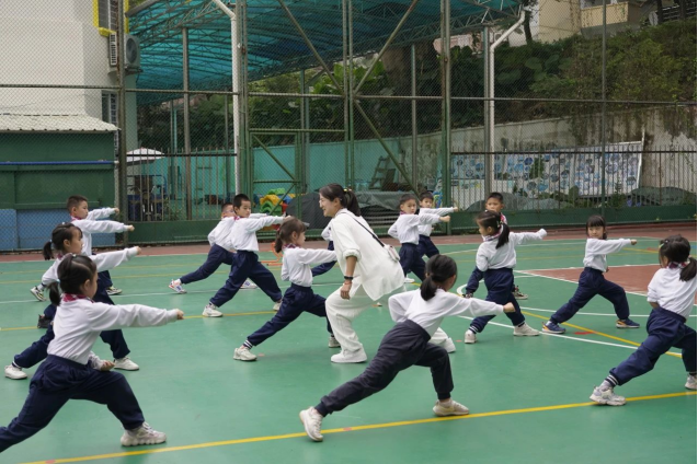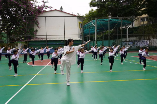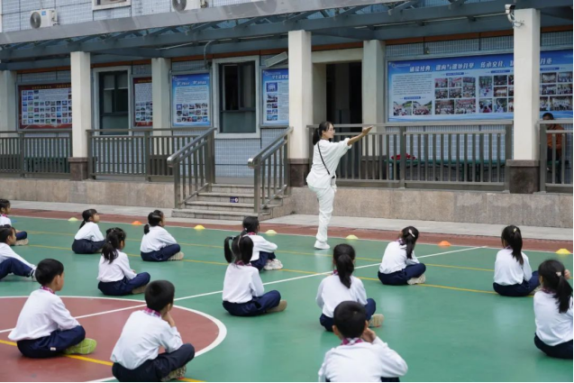 郭嘉柠老师执教的是一年级六班项目进课堂《武术五步拳—组合》第一课时。课堂上,郭老师将“诗歌、游戏”与武术基本功进行融合。引导学生从游戏中体验武术的乐趣。通过边诵边练《江南—汉乐府》诗歌,增强学生对动作的记忆点以及学生对空间的认识。一年级的小豆丁们学习兴趣浓厚,课堂气氛活跃。