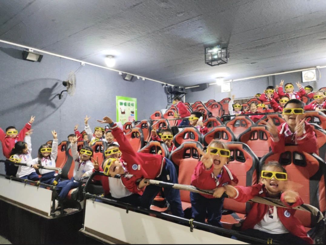 劳动之余,为了充分感受丰华园的风光,在秋天的旷野感受季节之美,孩子们还开展了旱地龙舟比赛,坐小火车、推石磨,体验了惊险刺激的4D电影等,尽情劳动,尽兴玩耍,尽情欢笑。
