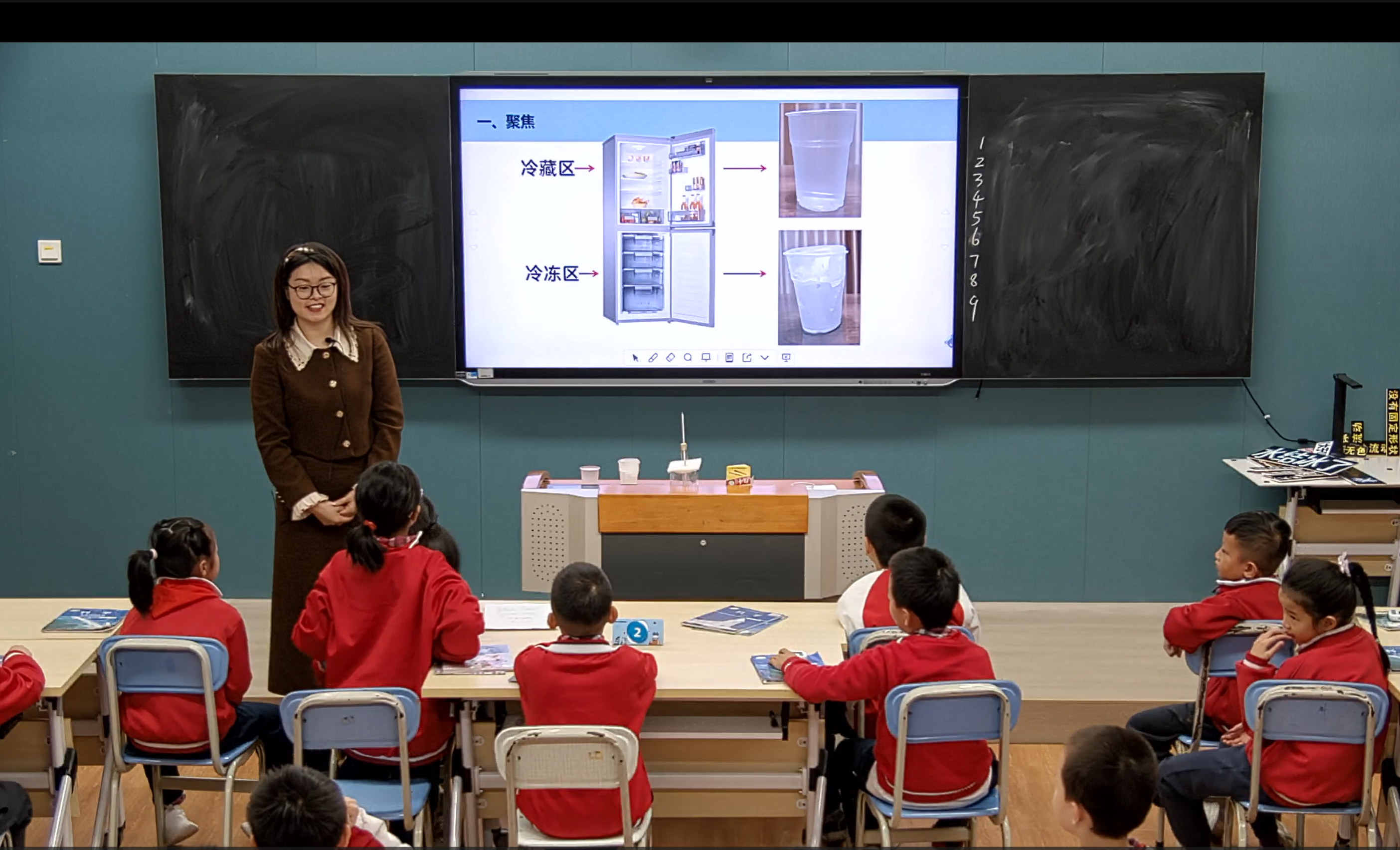 紧接着,是两节生动有趣的实验探究课。首先,白云外国语小学的谢家乐老师带来了《水结冰了》一课。谢老师通过创设温度不断下降的环境,让学生观察并记录水结冰的过程中的各种变化,引导学生认识到当水的温度下降到0℃时,会开始结冰,从液体状态凝固成固体状态,并且体积会增大。学生们在实验中兴趣盎然,积极动手操作,不仅观察到了水结冰的现象,还深入理解了物质状态变化与热量变化的关系。