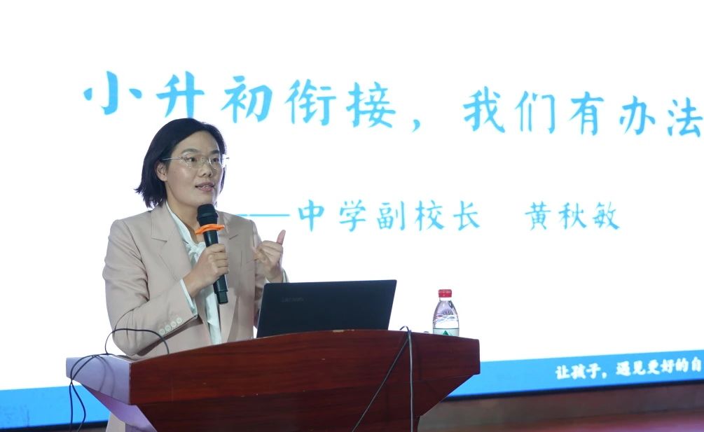 副校长黄秋敏从暑期学业跟进与开学初素质拓展两方面,详细讲解了如何实现小学到初中的无缝衔接,提供了许多实用的建议和方法。
