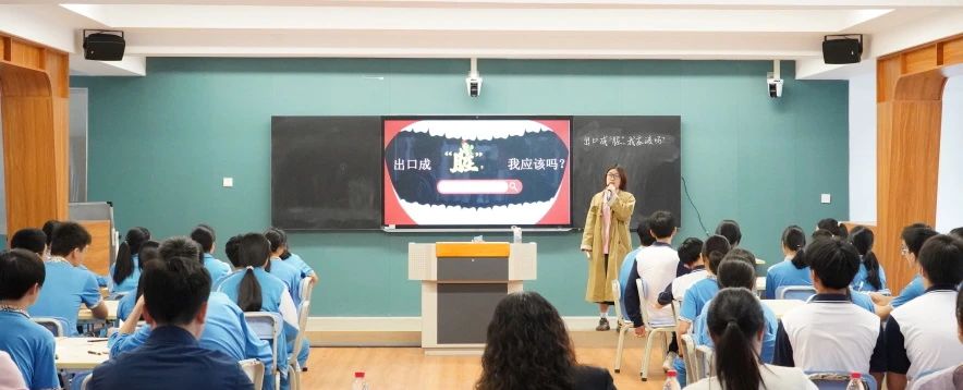 初三年级《出口成“脏”,我应该吗?》,课堂上,何飞燕老师通过播放《脏话风波》新闻报道视频引入主题,迅速吸引了学生的注意力。