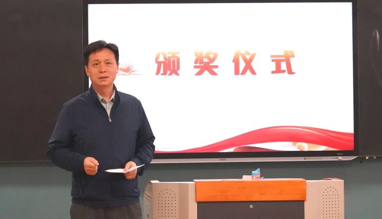朱传兵副书记宣读本次班会课比赛获奖名单,江健博士、方建军校长为获奖班级、年级颁奖。
