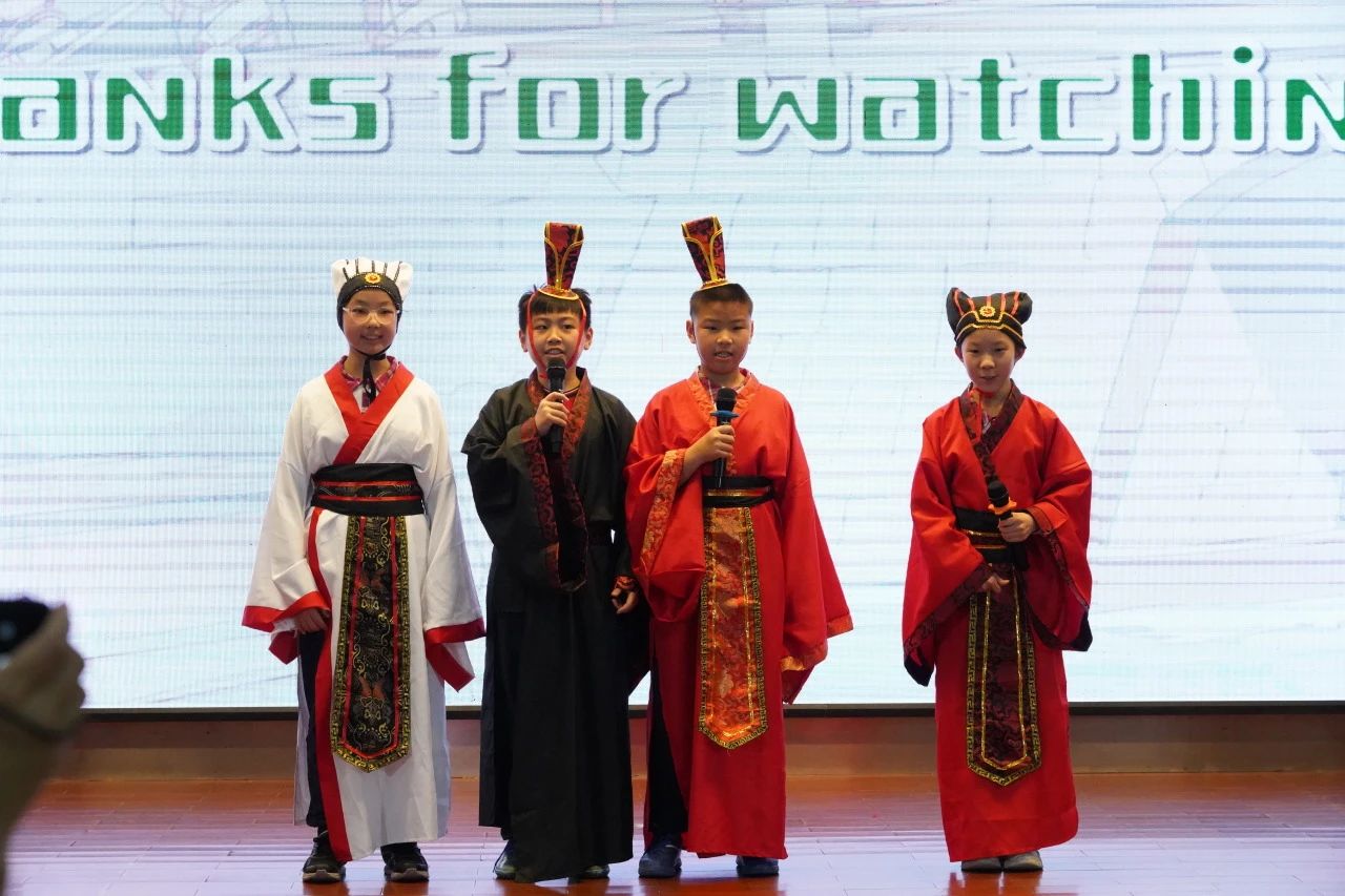 五年级各班的同学们表现都十分亮眼。五(1)班选择经典故事《草船借箭》参赛。为更好地展现故事内容,同学们精心准备了契合角色的服装,力求生动还原古人风貌。值得一提的是,大家还亲自动手制作了 “战船” 道具,细节之处尽显用心。凭借这份对比赛的热忱与认真,五(1)班同学在比赛中大放异彩,为观众带来了一场别开生面的视听盛宴。