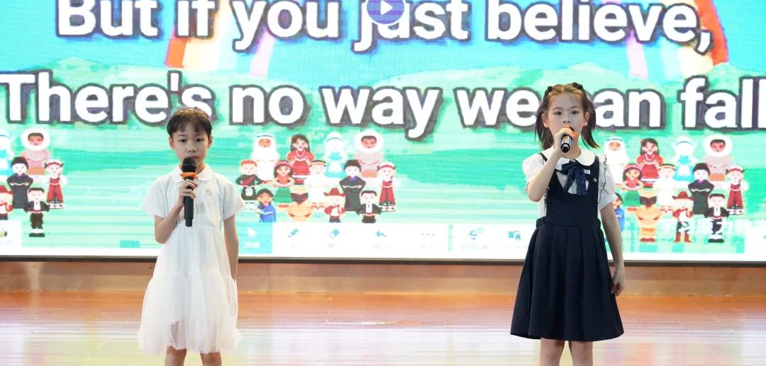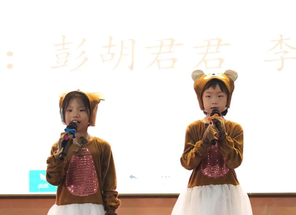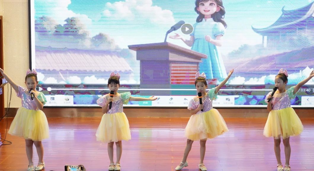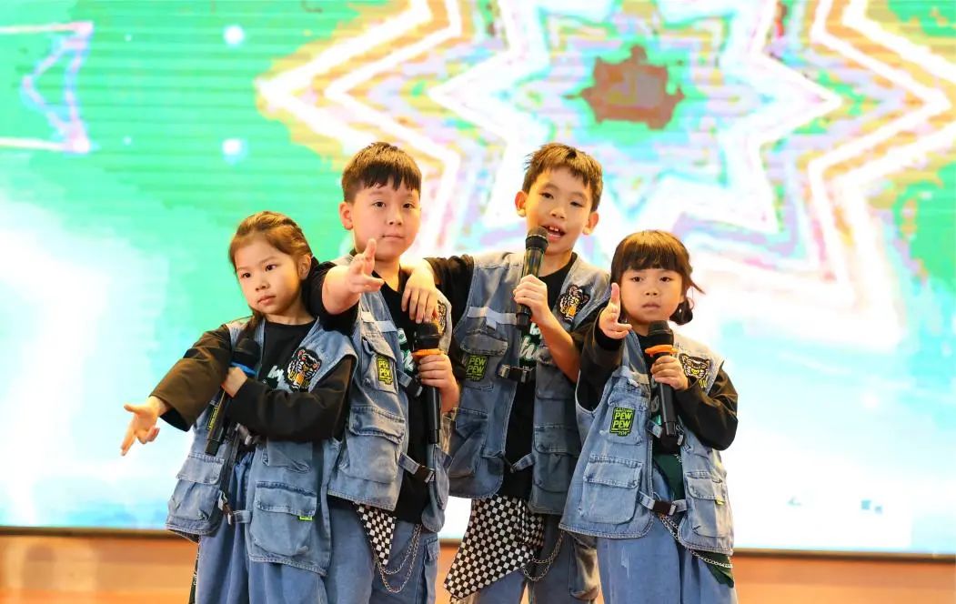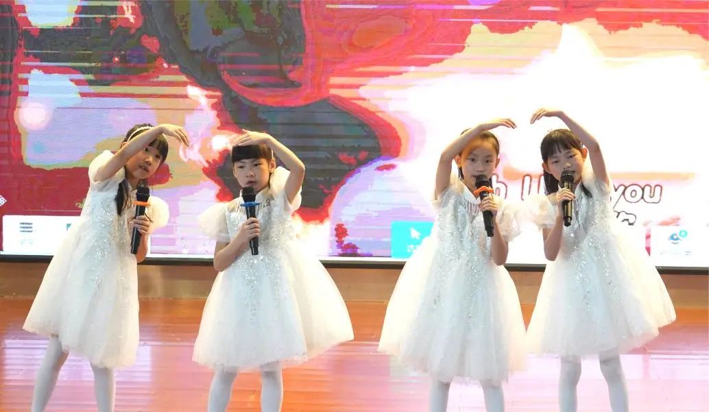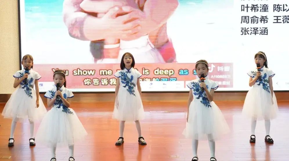 二(4)班《A little love + butterfly》,王菲、叶一念、薛茵遥和王安澜四位同学以优美的歌声和和谐的旋律,将这两首经典歌曲完美融合,展现了她们的演唱技巧和团队合作精神。节目《Baby》,成其霖、王晞语、刘心宥、陈泓憬四位同学以活泼可爱的表演风格,将这首充满童趣的歌曲演绎得生动有趣,赢得了观众的喜爱。