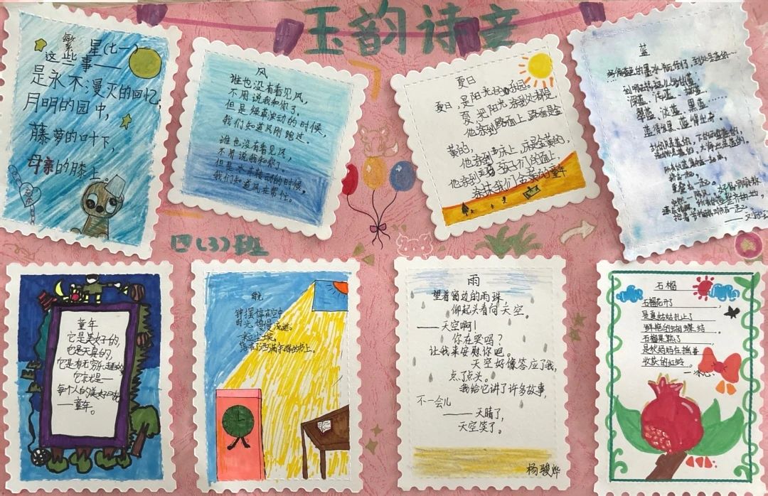 此次活动不仅是对课本第三单元现代诗教学的延伸,更是“双减”背景下学科融合的创新实践。正如四年级组的老师们所说:“当诗歌遇见邮票,传统文化不再是博物馆里的标本,而是孩子们手中可触、可画、可创新的活态文化。”