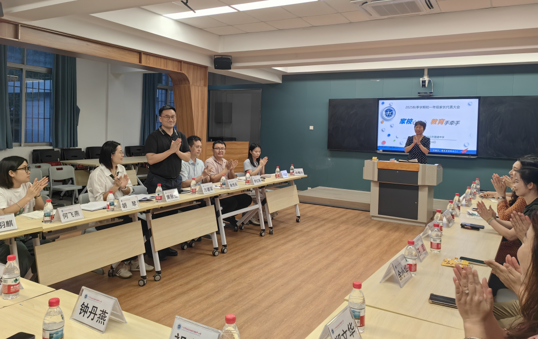 各班班级家委代表逐一亮相,既有深耕教育行业的专业人士,也有热心公益的全职妈妈。家委总代表王筱逸爸爸在发言中提出两大关键词:"转变"与"信任"。他呼吁家长适应初中生身心发展规律,放下焦虑;同时强调“信任是家校合作的基石”“家长和学校是一个战壕里的战友,双方应当相互信赖、同心同力”!