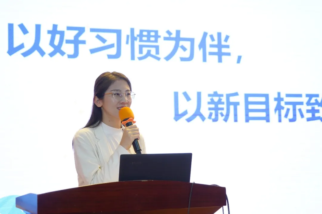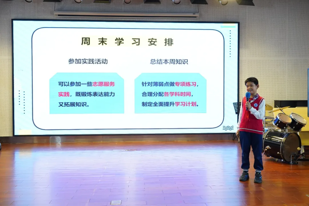 紧接着,五年级年级组长陈柳妤老师以“以好习惯为伴,以新目标致远”为主题发言。她围绕“卫美校园,洁润童心”的习惯养成点,从卫生、个人仪表等方面提出具体要求,倡导大家践行文明规范、展现良好风采。同时,陈老师还向同学们介绍了本学期的重点活动,鼓励同学们积极参与、全面发展,在活动中提升综合素养,向着新目标奋勇前行。