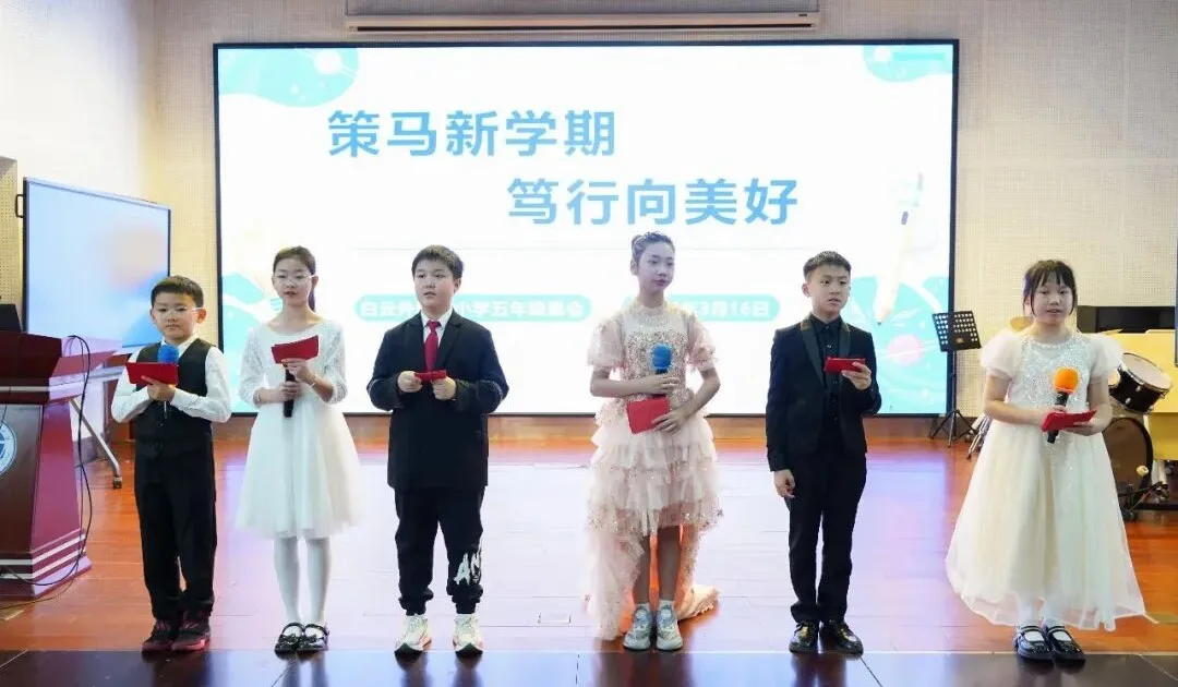 时光铺就新学期的奋进之路,五年级组全体教师和学生以最饱满的热情开启“史上最短学期”。2026年3月16日上午班会课,五年级全体师生齐聚云山礼堂,隆重举行“策马新学期 笃行向美好”主题集会活动,以初心赴新程,以笃行向未来。出席本次活动的有黄哲昙副校长,小学课程教学中心张玉静主任、刘欣副主任,教师发展中心聂芹副主任,以及五年级全体师生,共同见证五年级学子的成长启航。