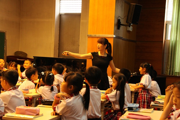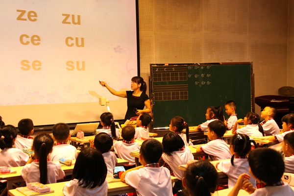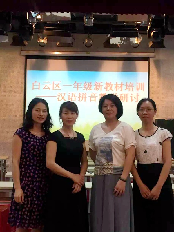 本网讯9月28日上午,广州市白云区一年级语文新教材拼音教学研讨课和教材培训活动在广外附小云山礼堂举行。到场的有白云区语文教研室黄老师、白云区一年级语文教师,整个礼堂座无虚席。