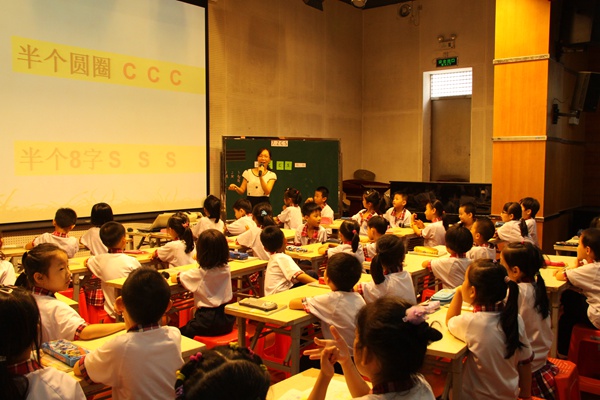 首先,来自黄边小学的欧阳敏怡老师在小一(1)班上了《z c s》第一课时,充分运用教材的情境图,编故事、编顺口溜,让孩子们识记声母zcs的音和形,孩子们学得既扎实又快乐。