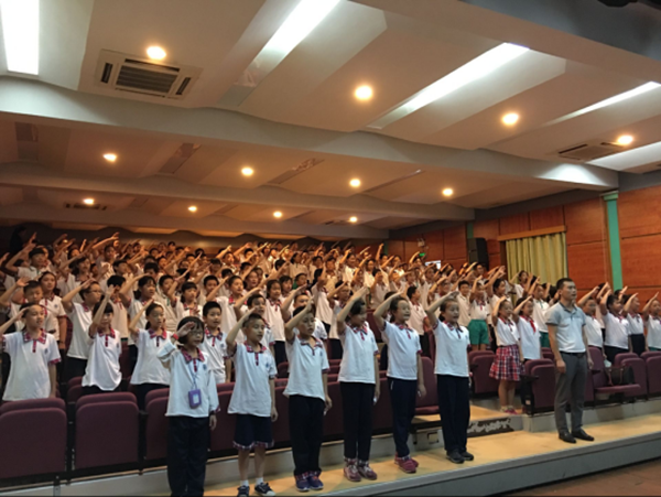 本网讯9月28日下午,五年级全体师生在云山礼堂举行了年级德育主题活动“祖国在我心中”的启动仪式。学生处张慧华主任、朱中振副主任等领导参加了本次活动。