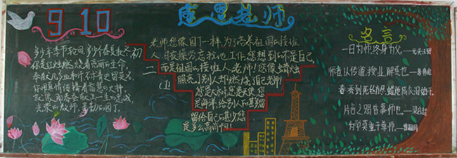 本网讯为庆祝第三十二个教师节的到来,营造良好的尊师重教氛围,进一步丰富校园文化生活,充分发挥黑板报的宣传作用,中学学生处在中秋节前开展以“感念师恩”主题教师节黑板报评比活动。